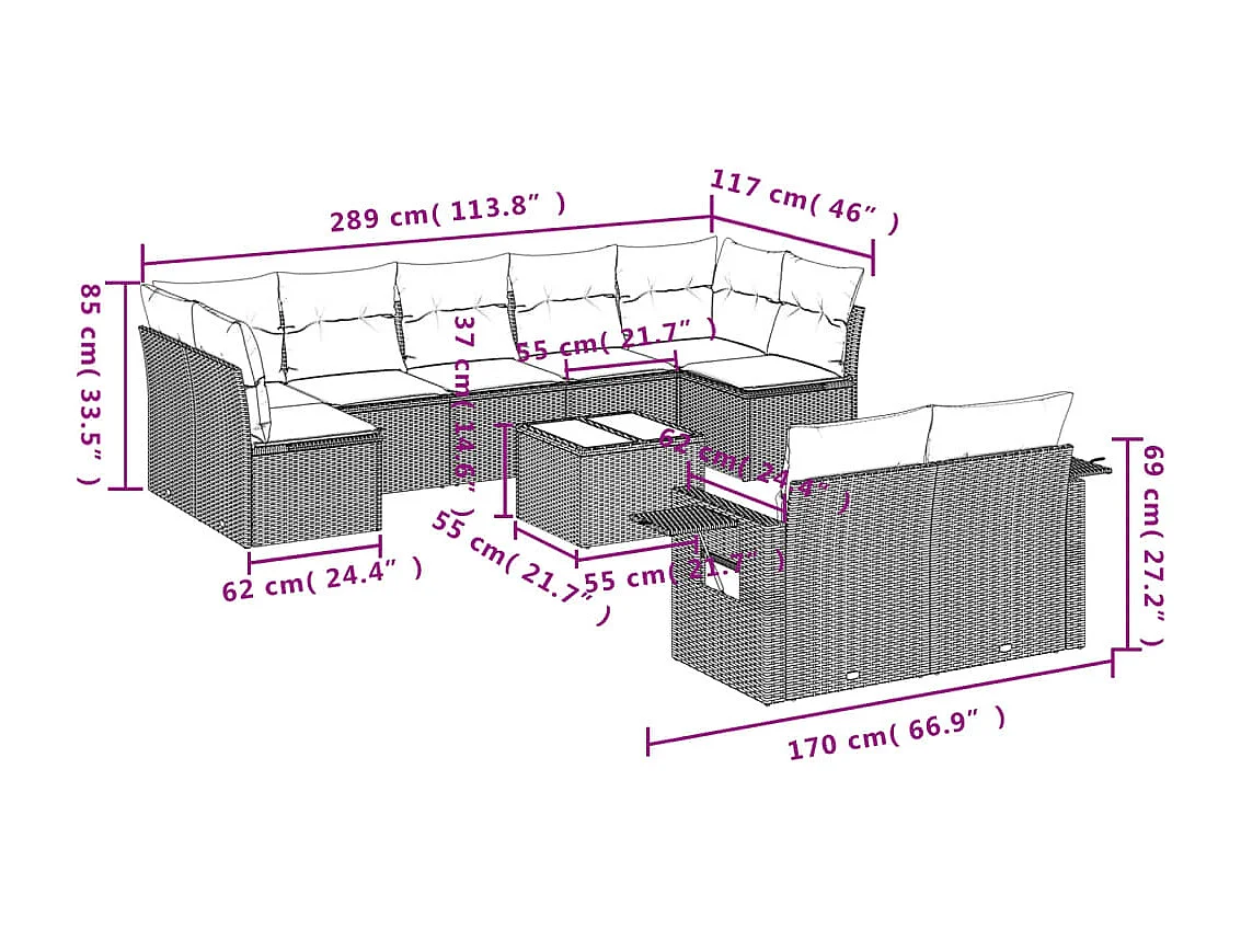 10-teiliges Gartenmöbelset mit braunen Kissen aus gewebtem Harz