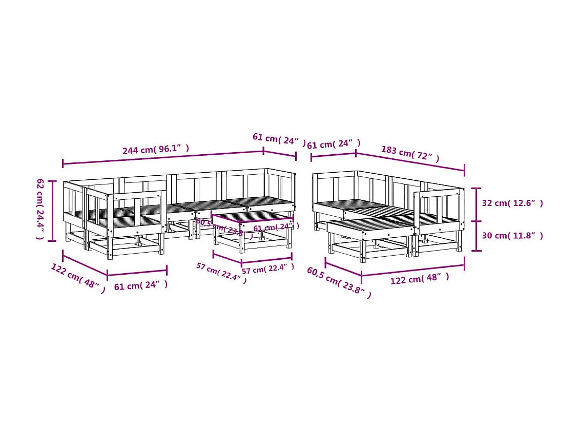 10-tlg. Garten-Lounge-Set Weiß Massivholz Kiefer