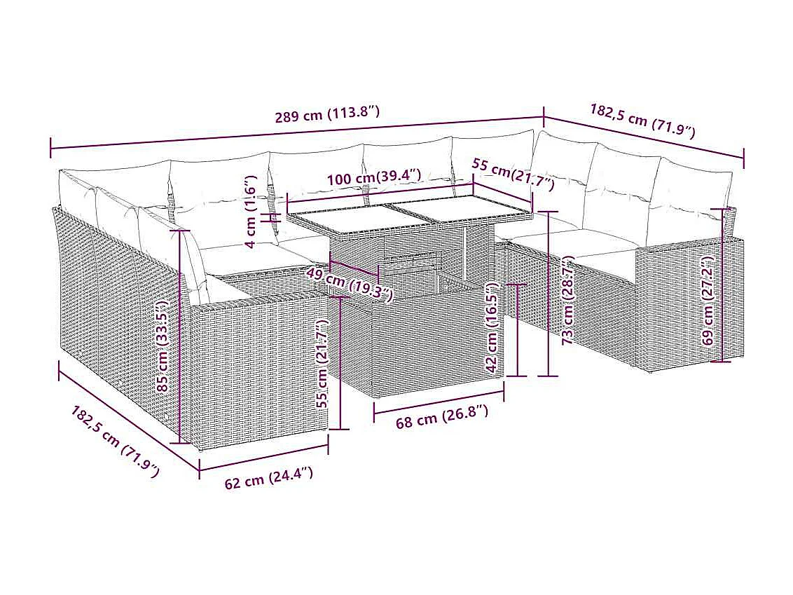 10-tlg. Garten-Sofagarnitur mit Kissen Beige Poly Rattan
