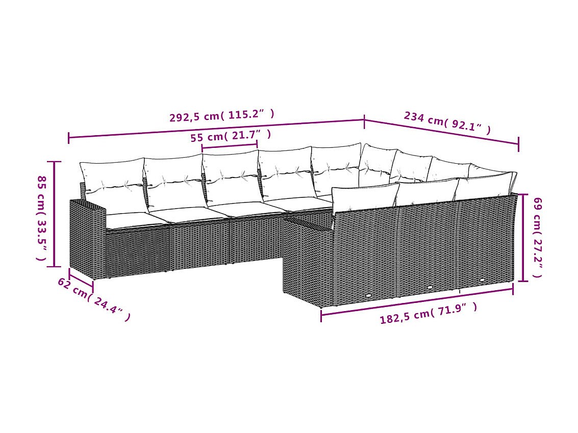 10-tlg. Garten-Sofagarnitur mit Kissen Beige Poly Rattan