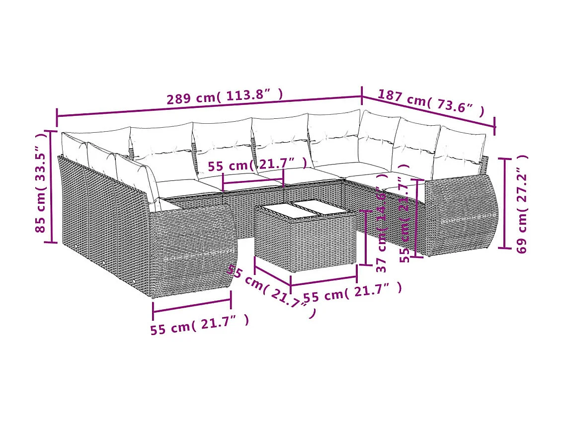 Gartenmöbel mit Kissen 10 Stück beige gewebtes Harz