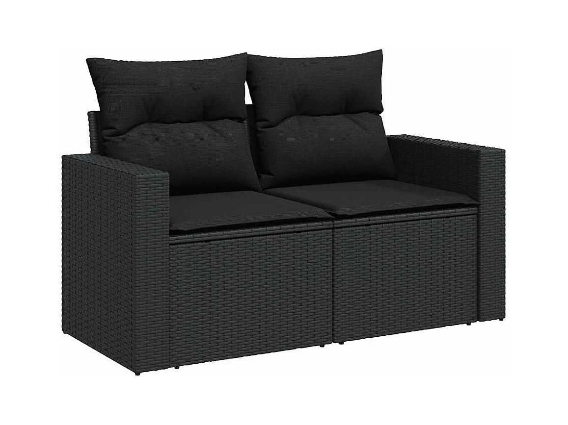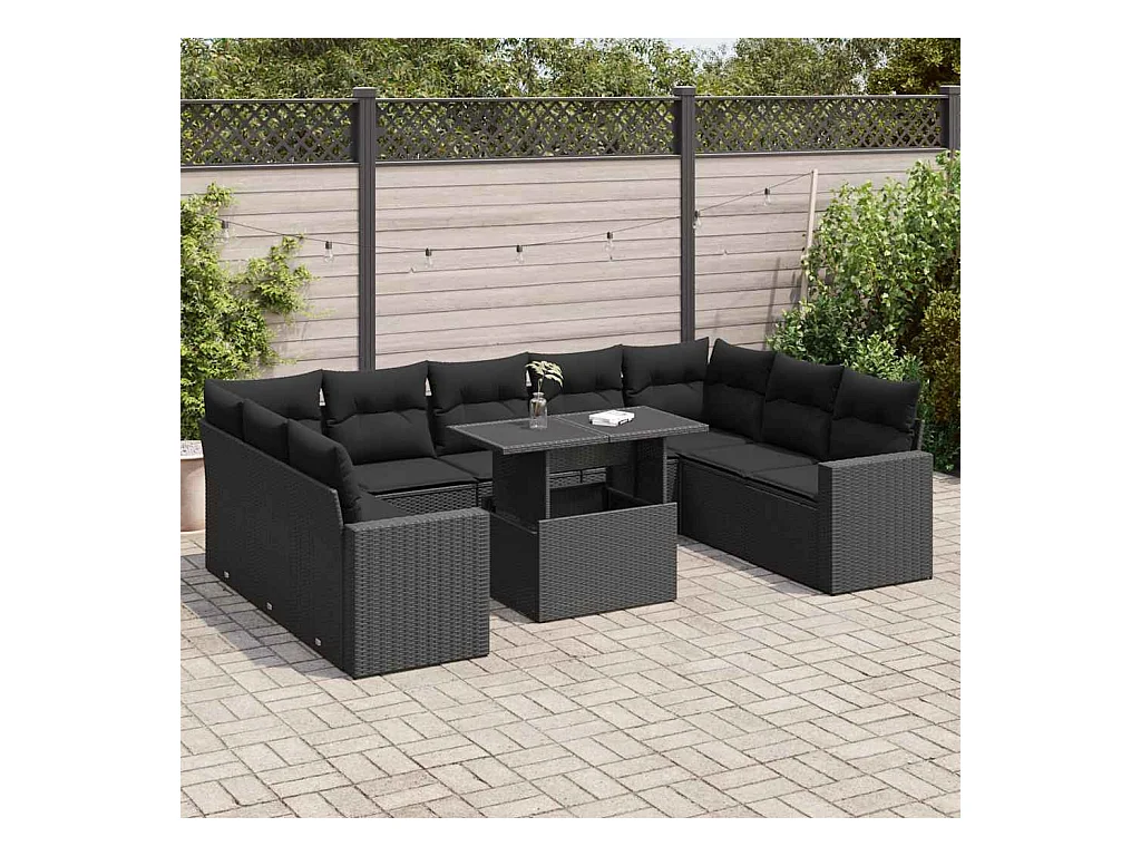 11-tlg. Garten-Sofagarnitur mit Kissen Schwarz Poly Rattan