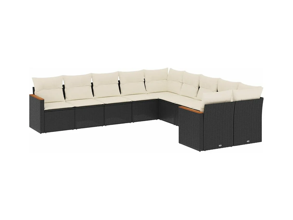 10-tlg. Garten-Sofagarnitur mit Kissen Schwarz Poly Rattan