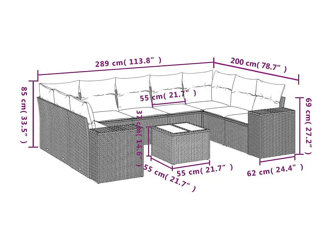 10-tlg. Garten-Sofagarnitur mit Kissen Schwarz Poly Rattan