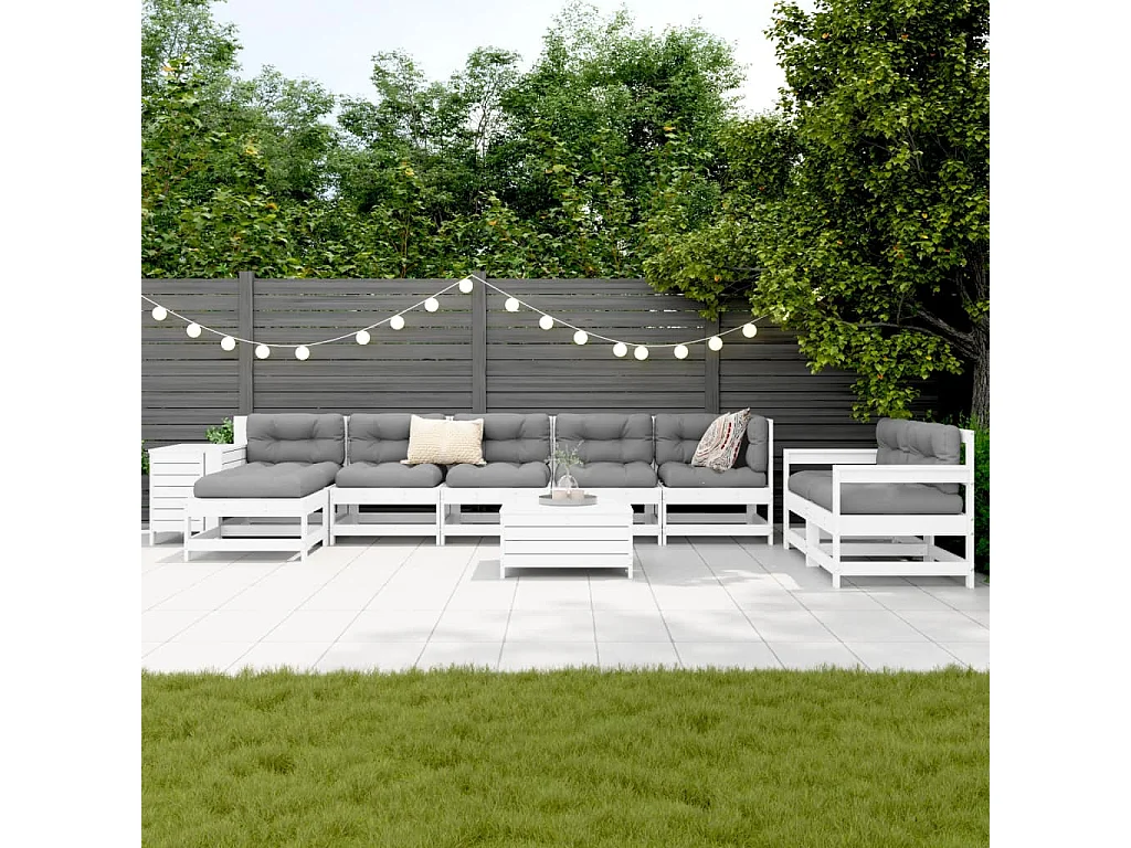10-tlg. Garten-Sofagarnitur Weiß Massivholz Kiefer