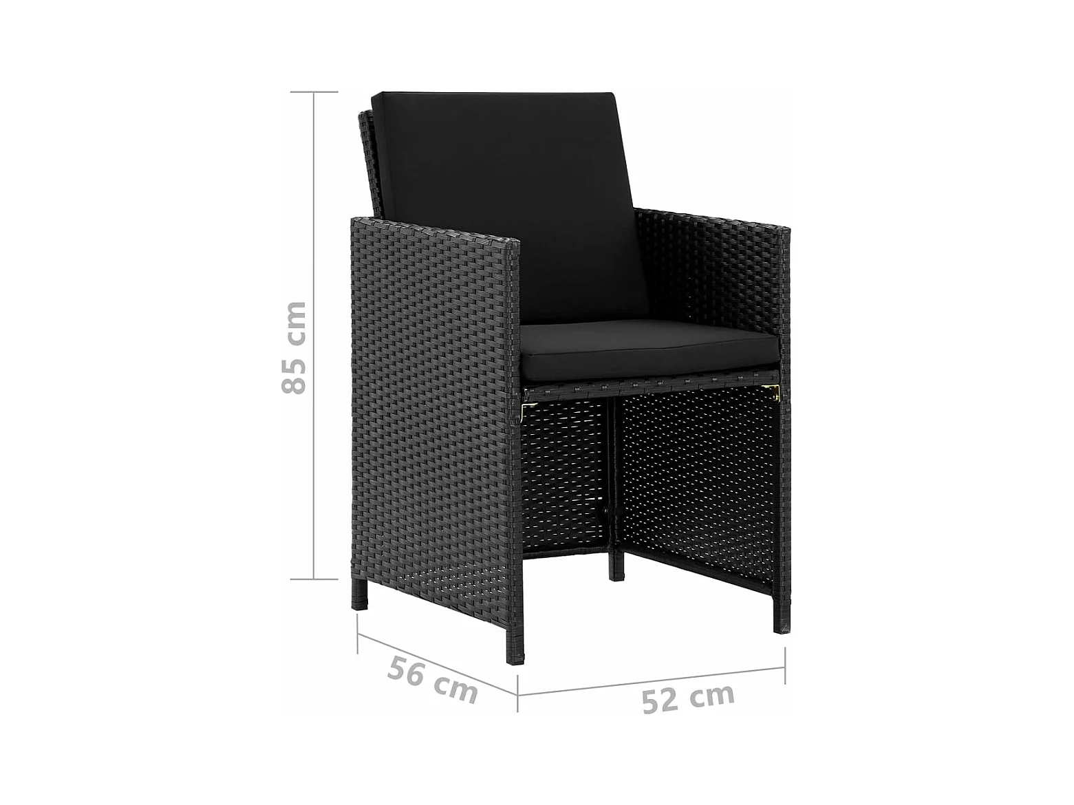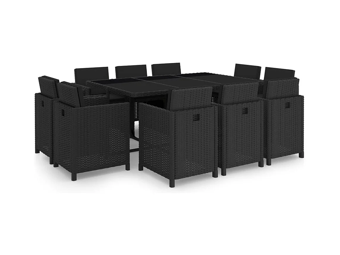 11-tlg. Garten-Essgruppe mit Auflagen Poly Rattan Schwarz