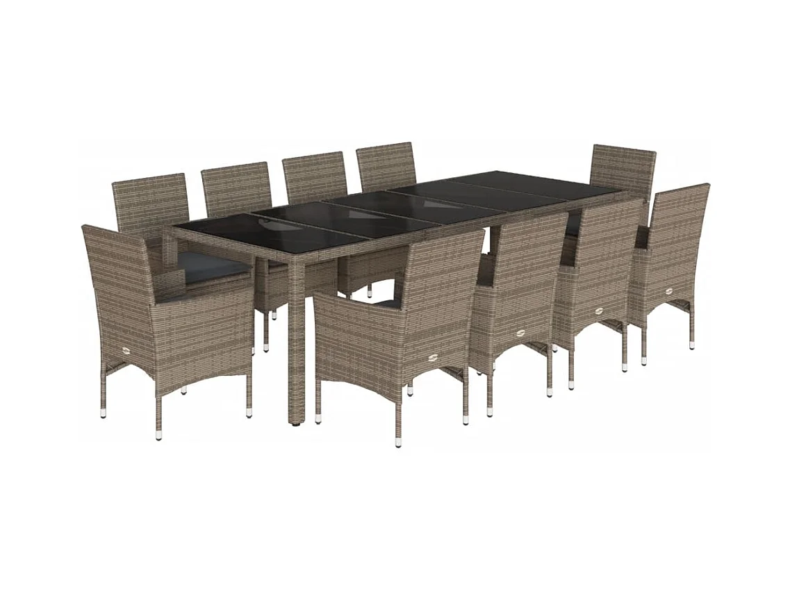 11-tlg. Garten-Essgruppe mit Kissen Grau Poly Rattan Glas