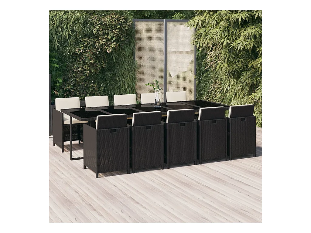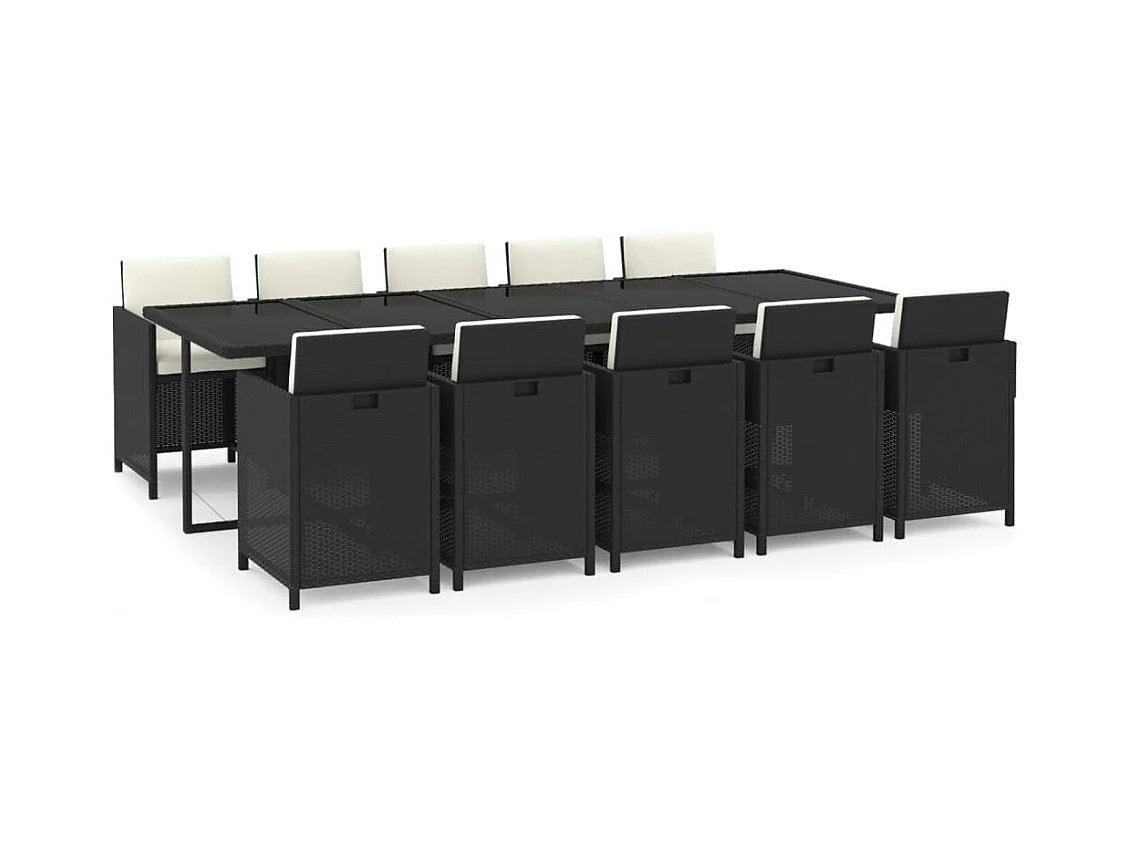 13-tlg. Garten-Essgruppe mit Kissen Poly Rattan Schwarz