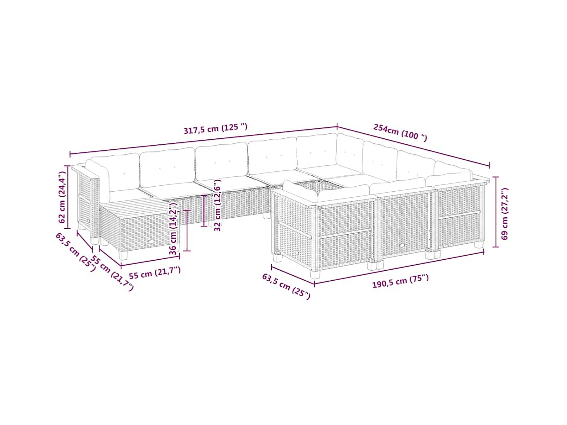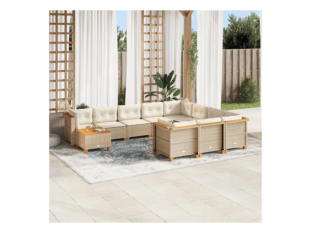 11-tlg. Garten-Sofagarnitur mit Kissen Beige Poly Rattan