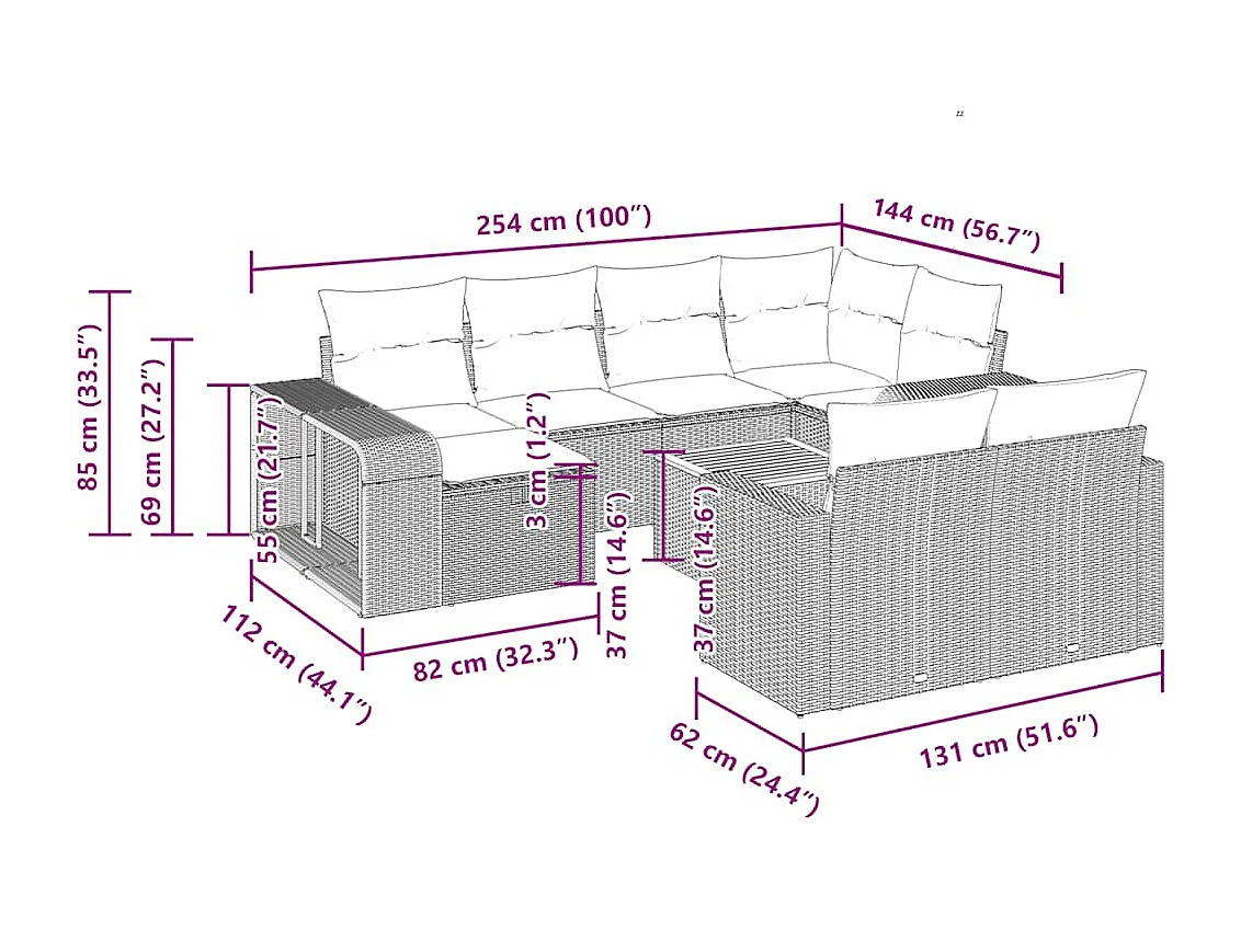 10-tlg. Garten-Sofagarnitur mit Kissen Beige Poly Rattan