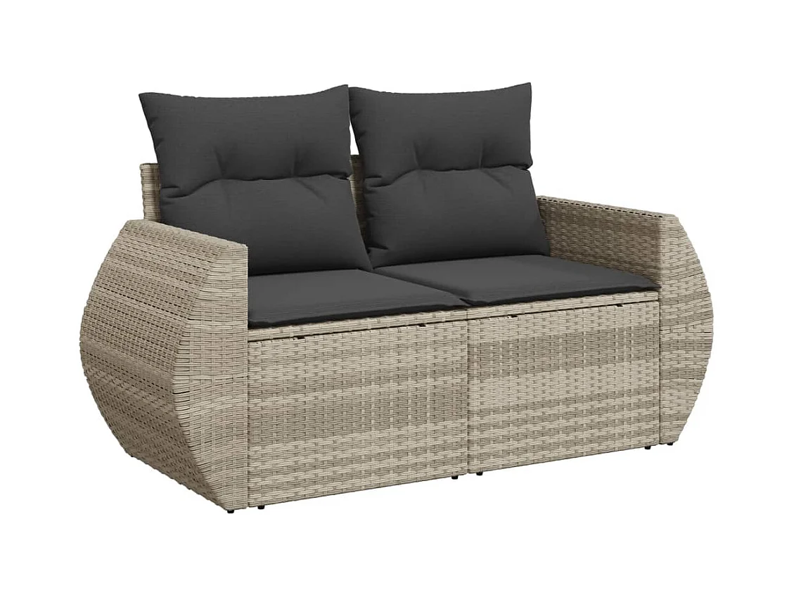 11-tlg. Garten-Sofagarnitur mit Kissen Hellgrau Poly Rattan