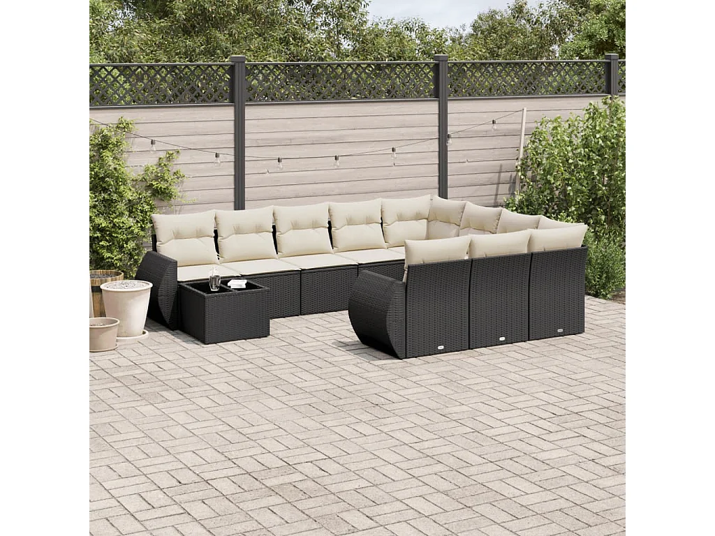 11 Stück Gartenmöbel mit schwarzen geflochtenen Harzkissen
