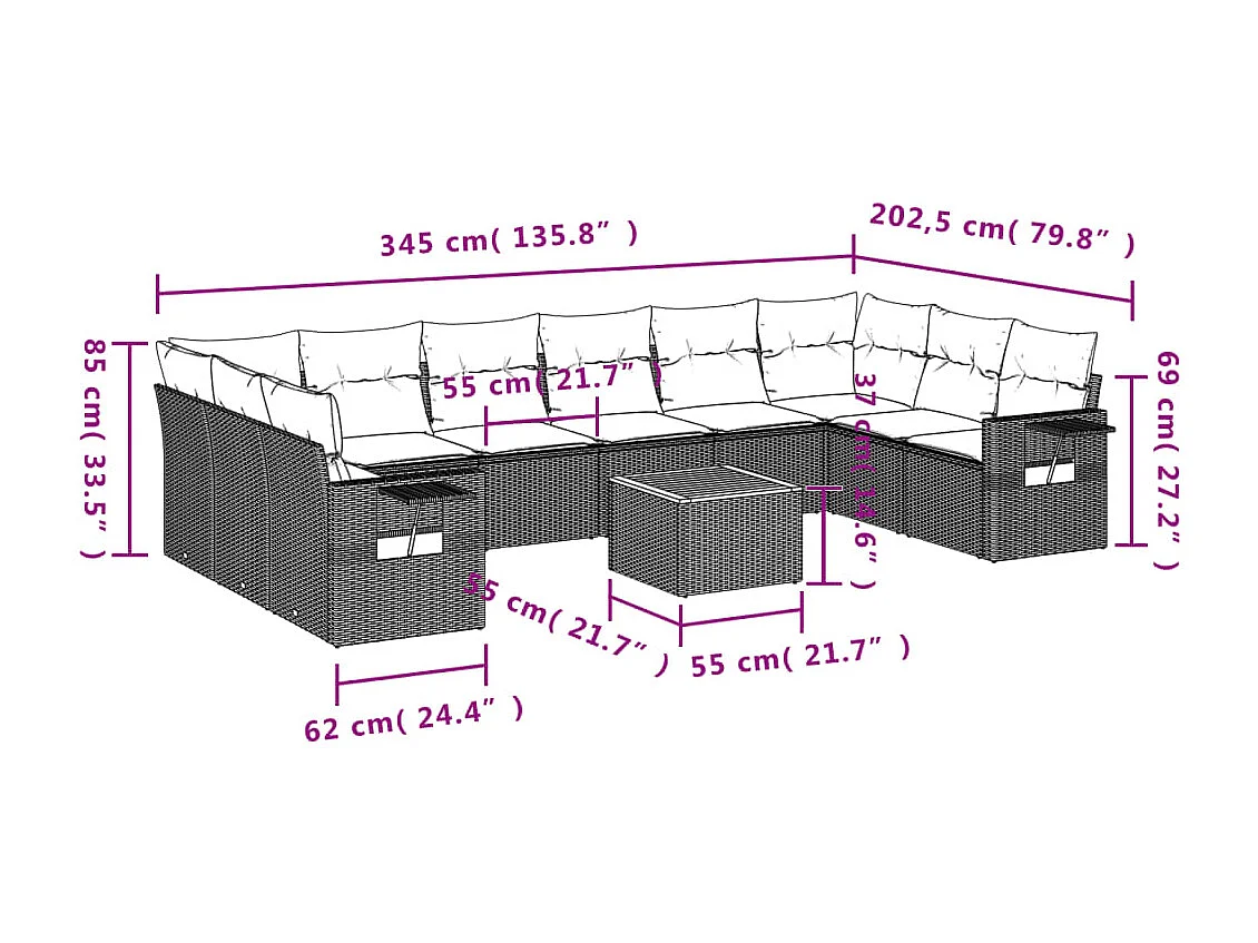 12-tlg. Garten-Sofagarnitur mit Kissen Schwarz Poly Rattan