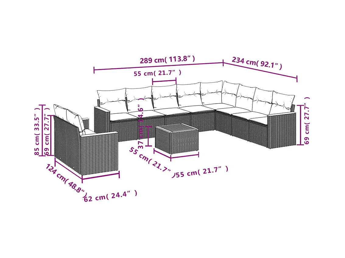 11-tlg. Garten-Sofagarnitur mit Kissen Schwarz Poly Rattan