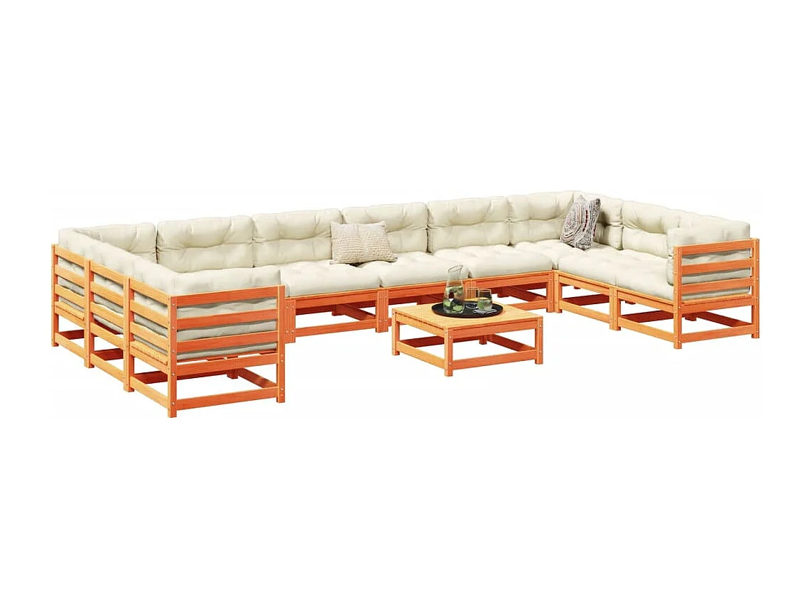 11-tlg. Garten-Sofagarnitur Wachsbraun Massivholz Kiefer
