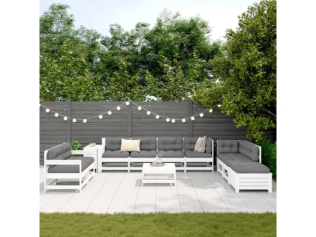 11-tlg. Garten-Sofagarnitur Weiß Massivholz Kiefer