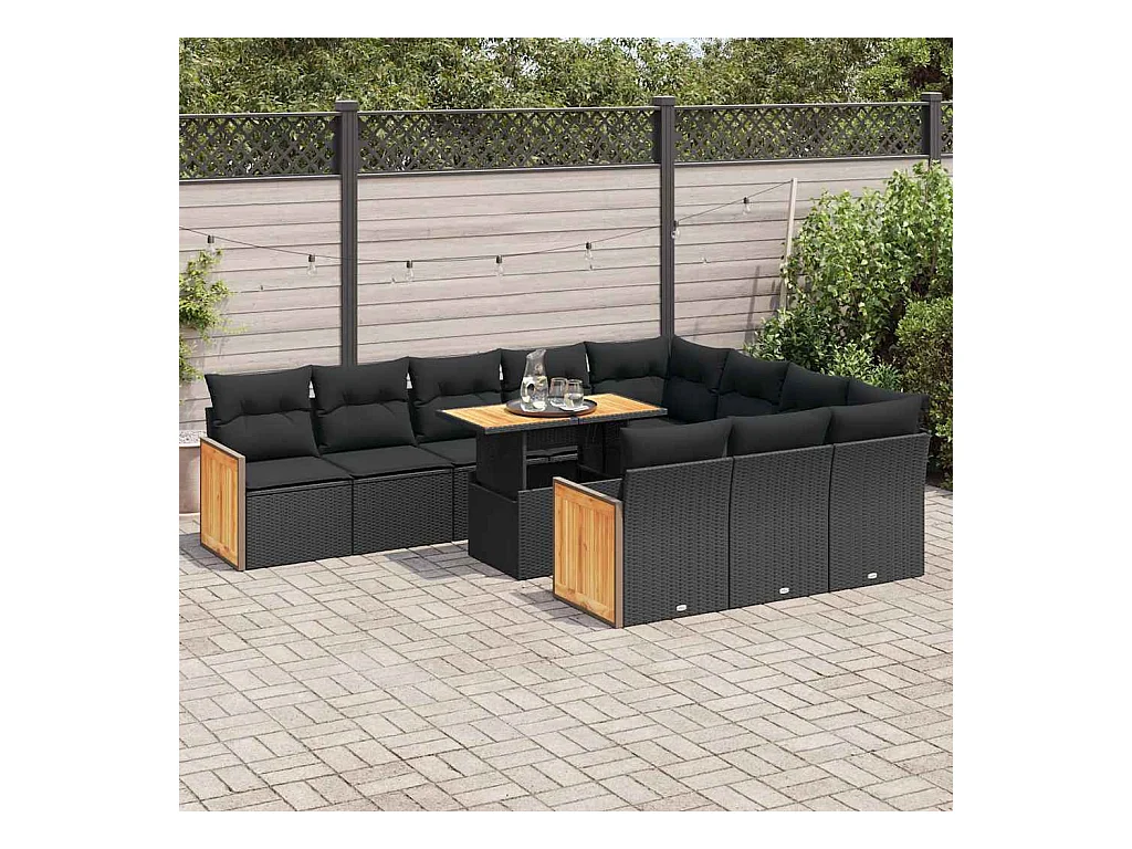 11 tlg. Gartensofagarnitur mit Kissen Akazienrattan