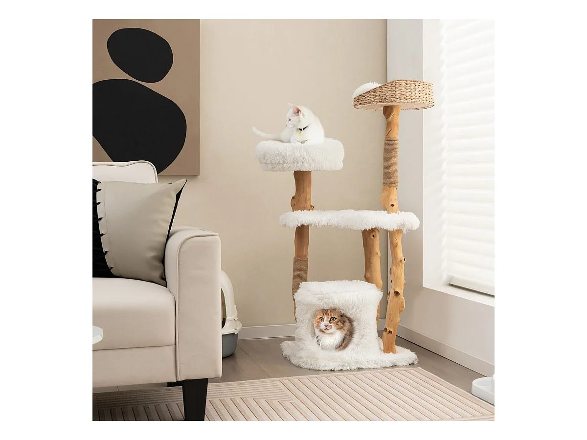 163 cm Hoher Kletterbaum Moderner Kratzbaum aus Holz Natur