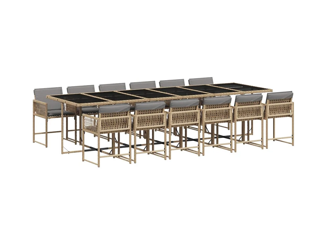 15-tlg. Garten-Essgruppe mit Kissen Beige Poly Rattan