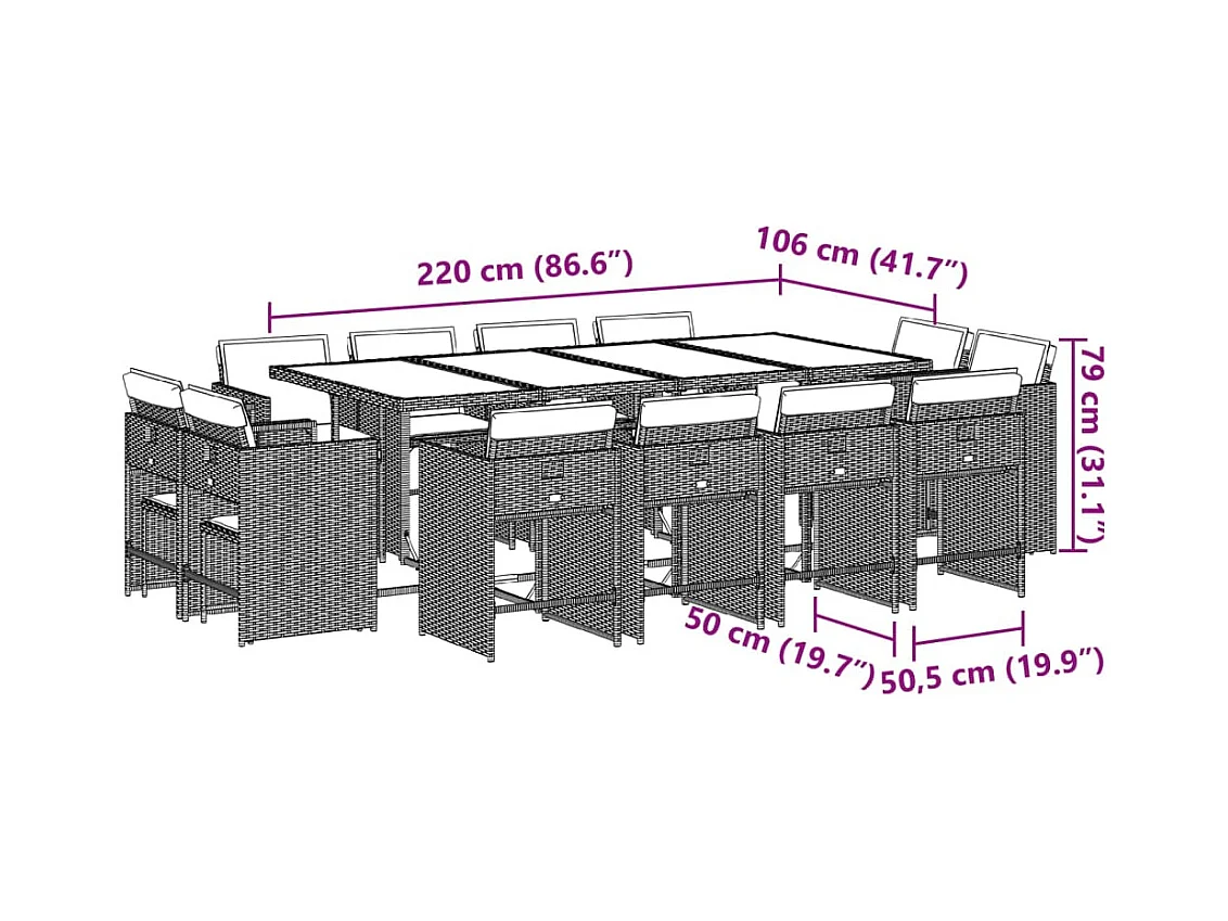13-tlg. Garten-Essgruppe mit Kissen Braun Poly Rattan
