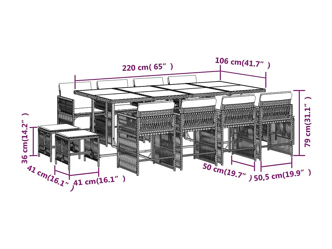 13-tlg. Garten-Essgruppe mit Kissen Schwarz Poly Rattan