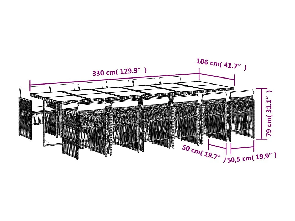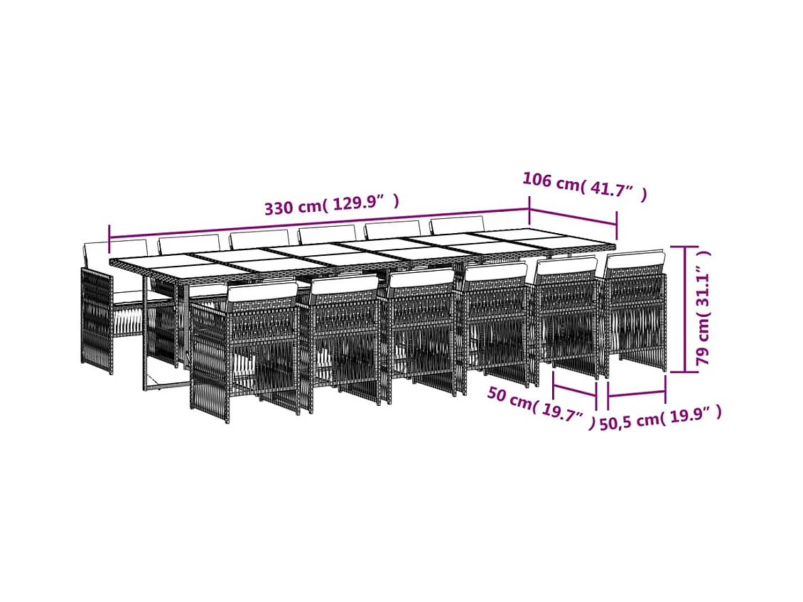 13-tlg. Garten-Essgruppe mit Kissen Schwarz Poly Rattan