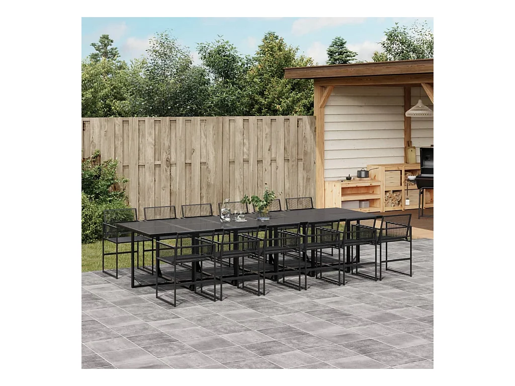 13-tlg. Garten-Essgruppe Schwarz Poly Rattan