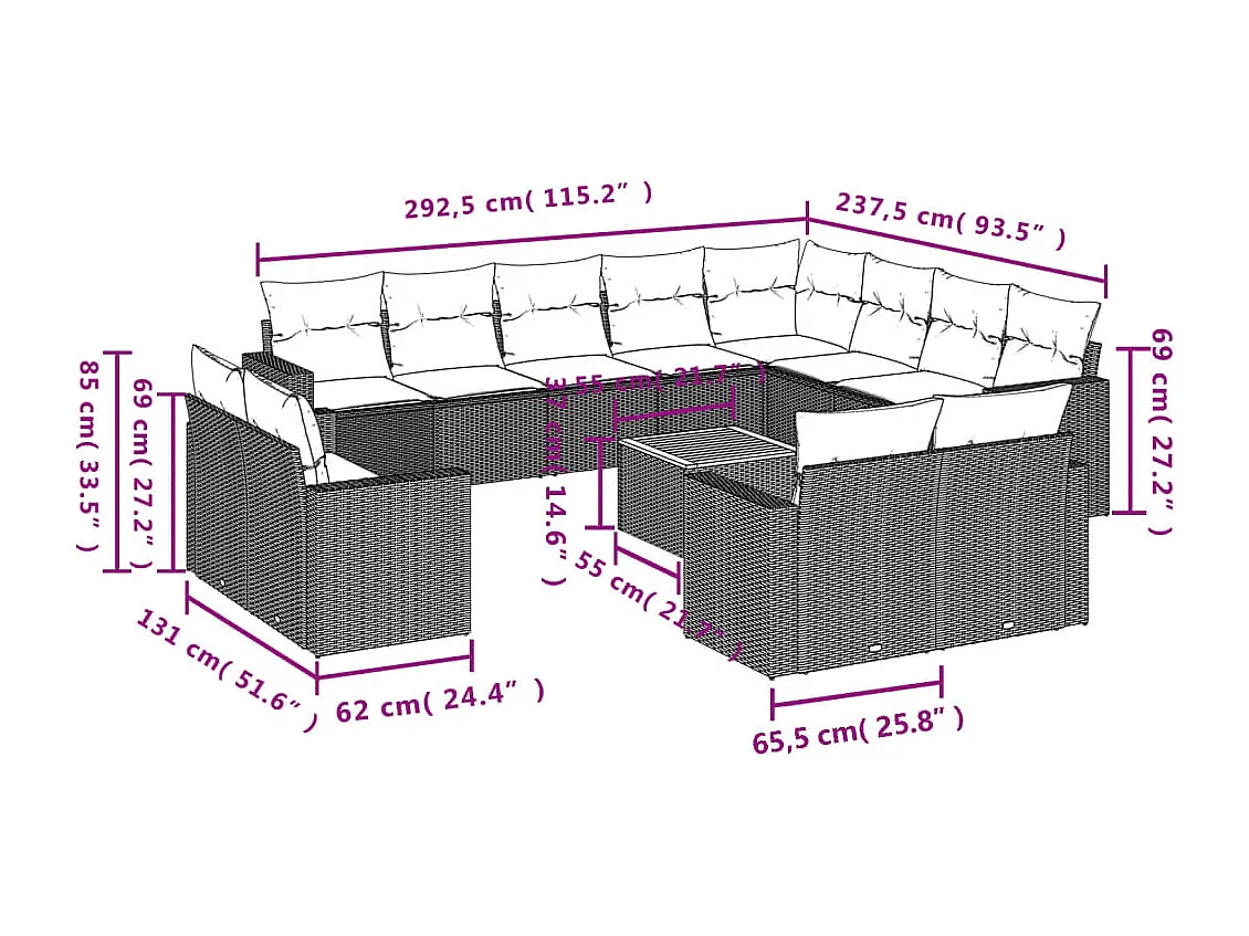 Gartenmöbel mit Kissen 13 Stück beige geflochtenes Harz