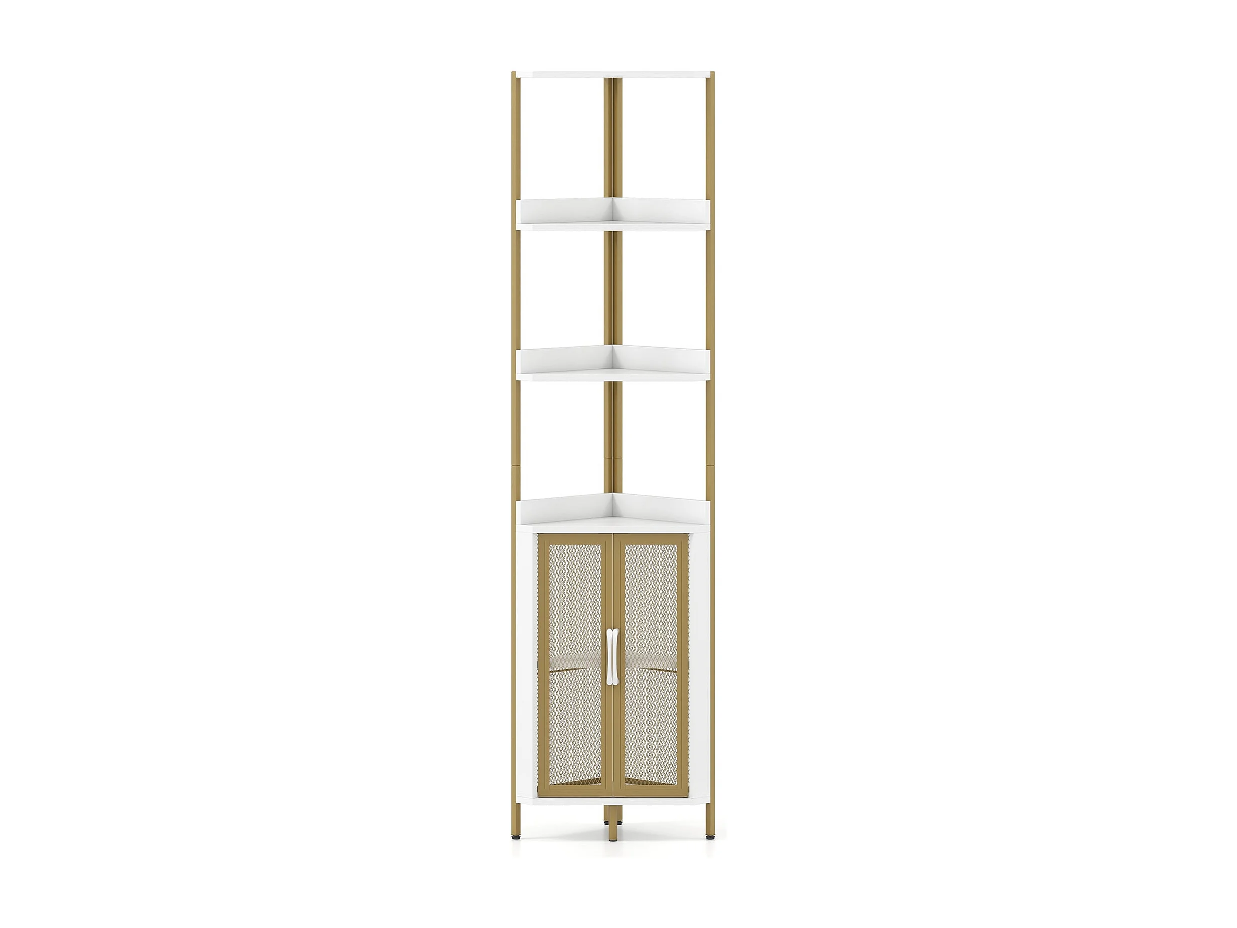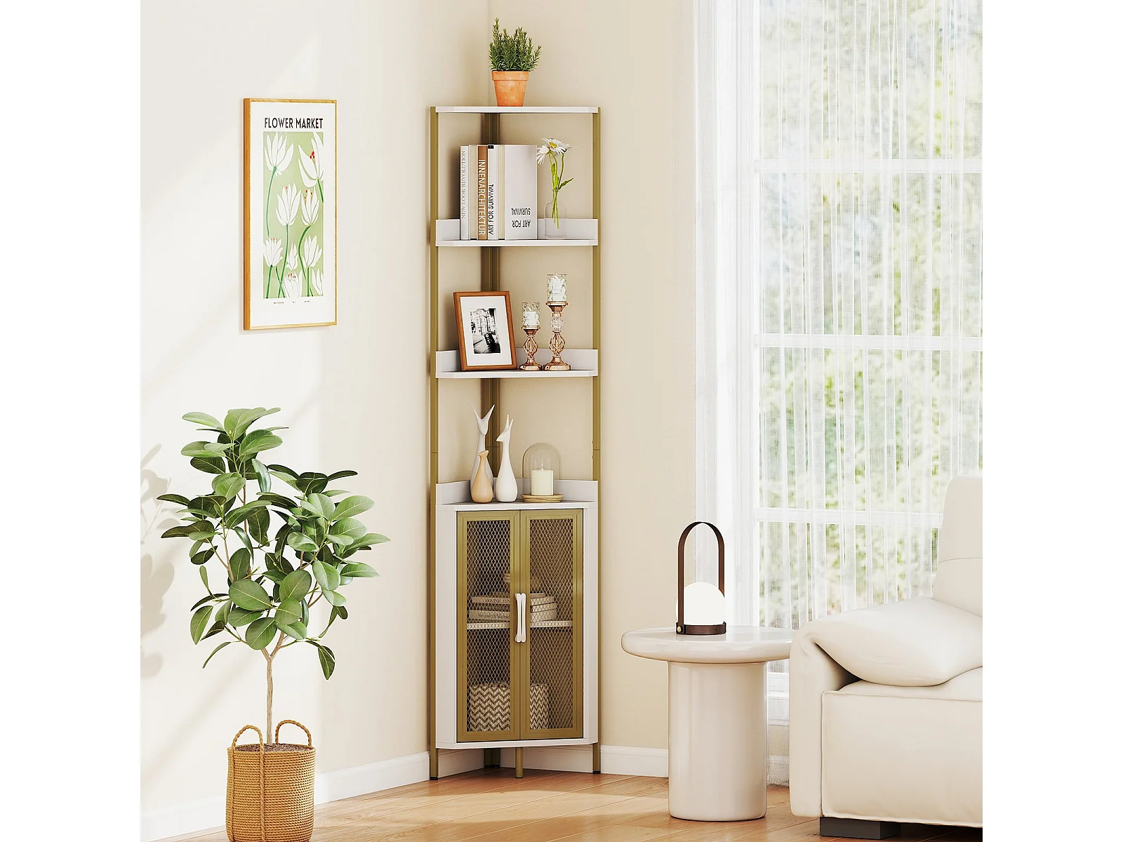 170 cm Hoh Eckregal mit Schrank & Türen & Metallrahmen Freistehendes Bücherregal Weiß
