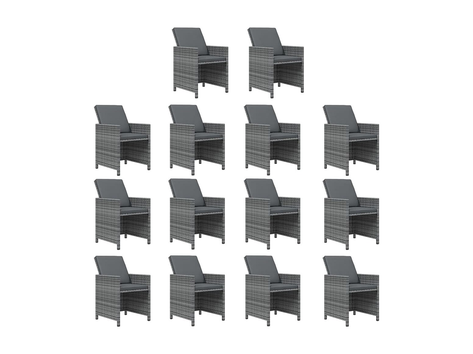 19-tlg. Garten-Essgruppe mit Kissen Poly Rattan Grau