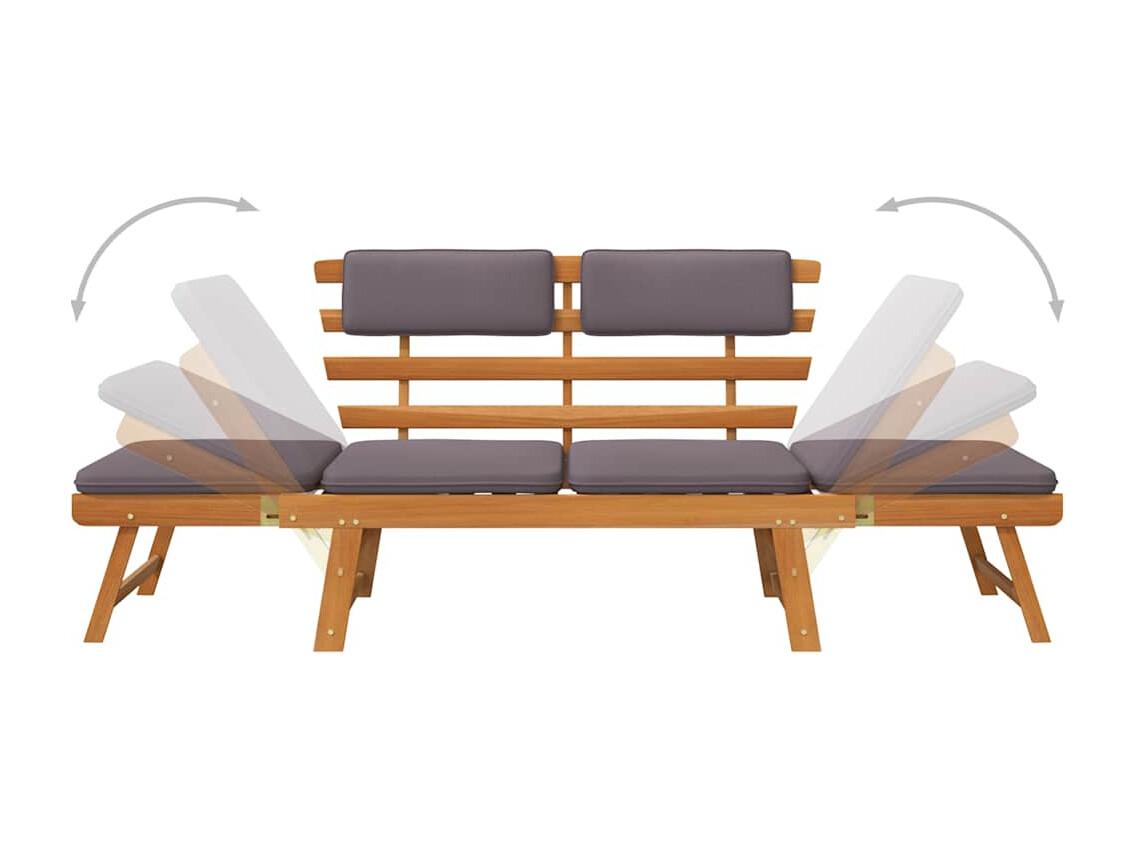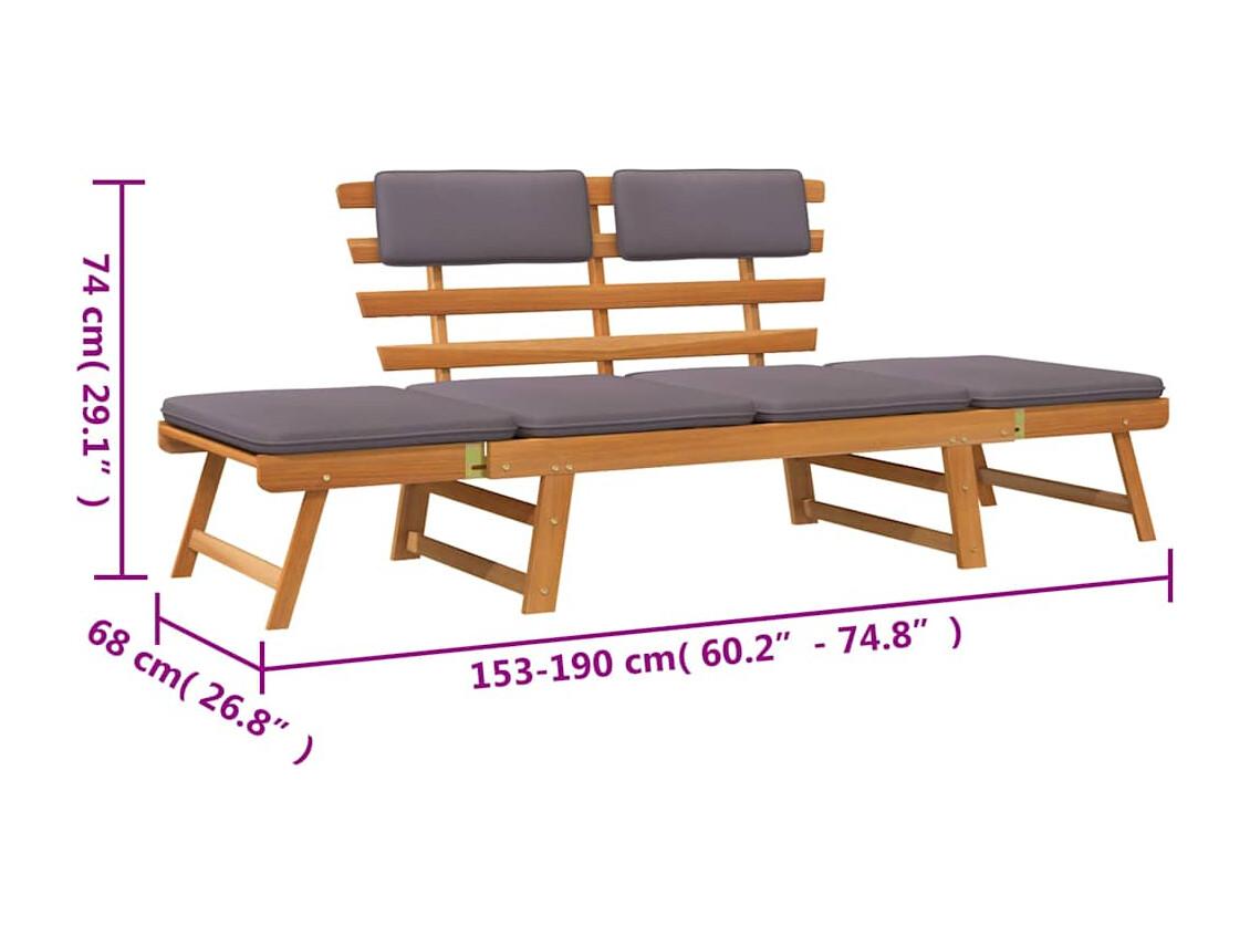 2-in-1 Chaiselongue mit Kissen 190 cm Massivholz Akazie