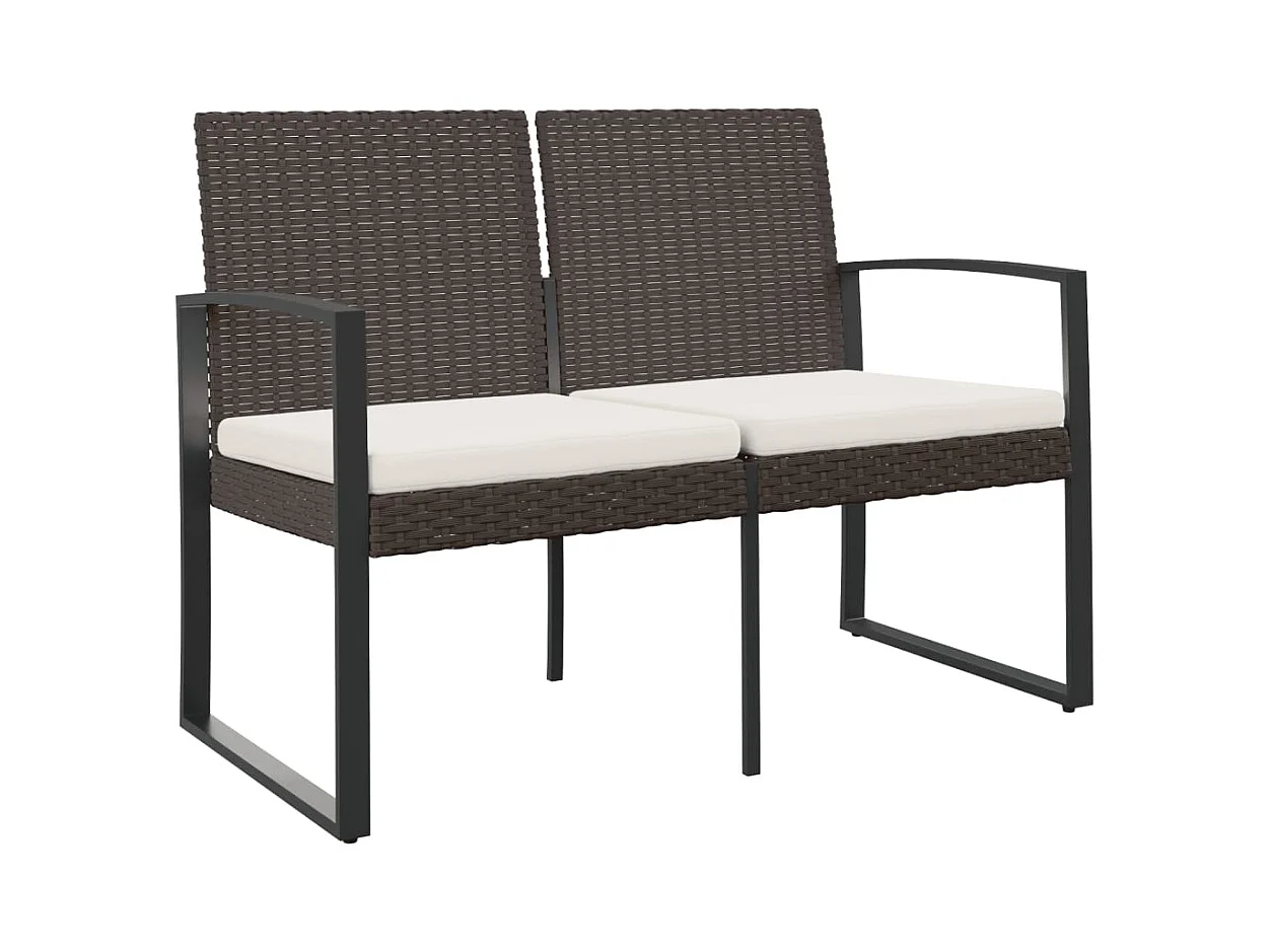 2-Sitzer-Gartenbank mit braunen PP-Rattankissen
