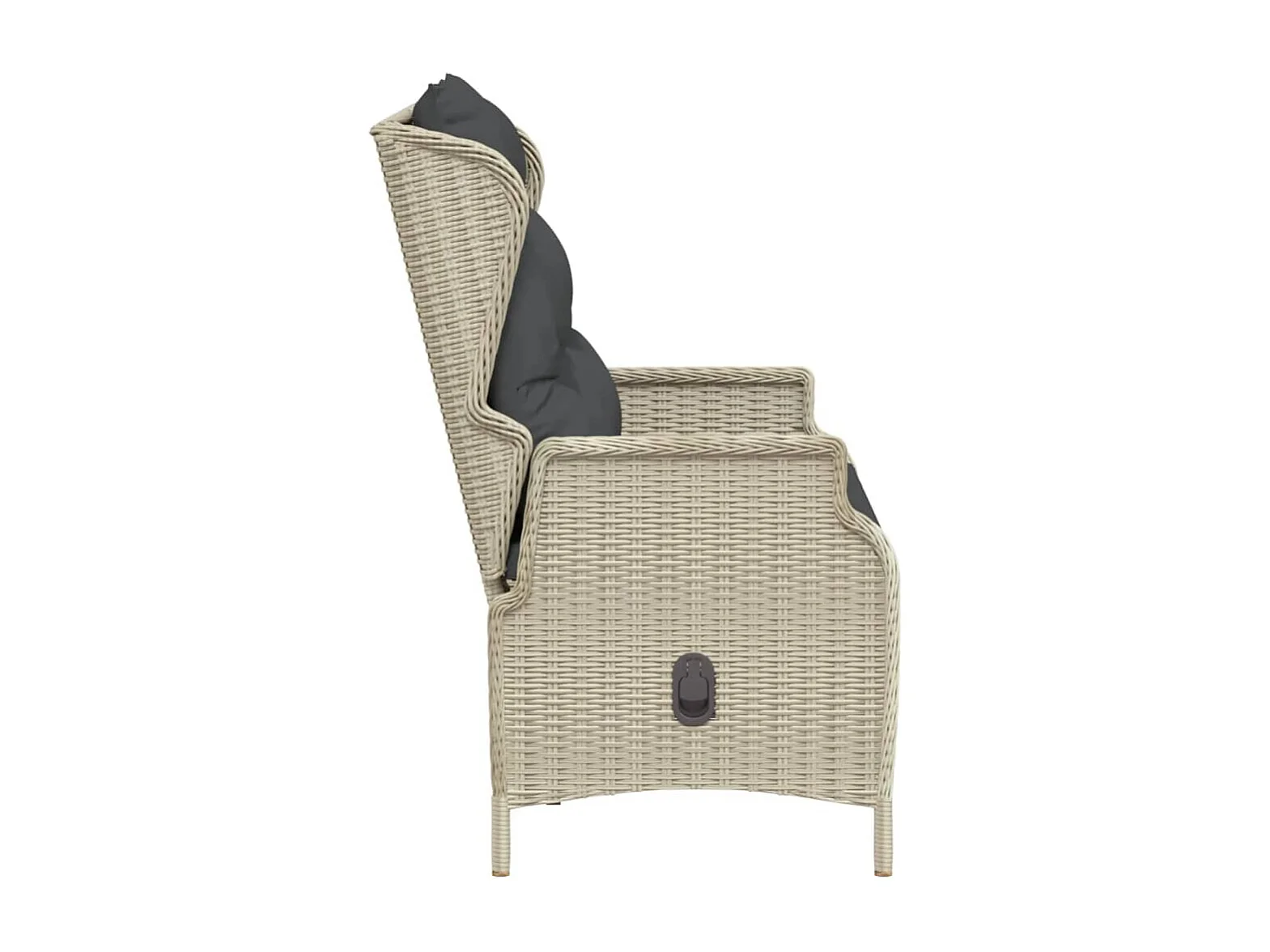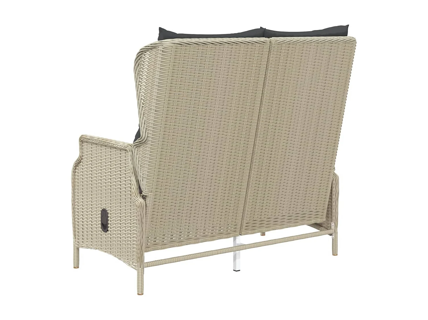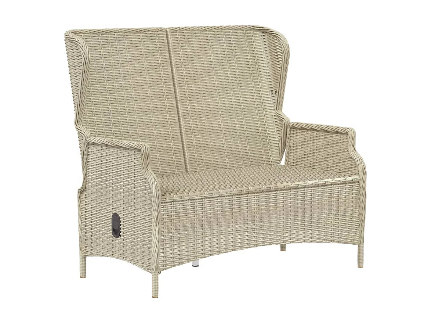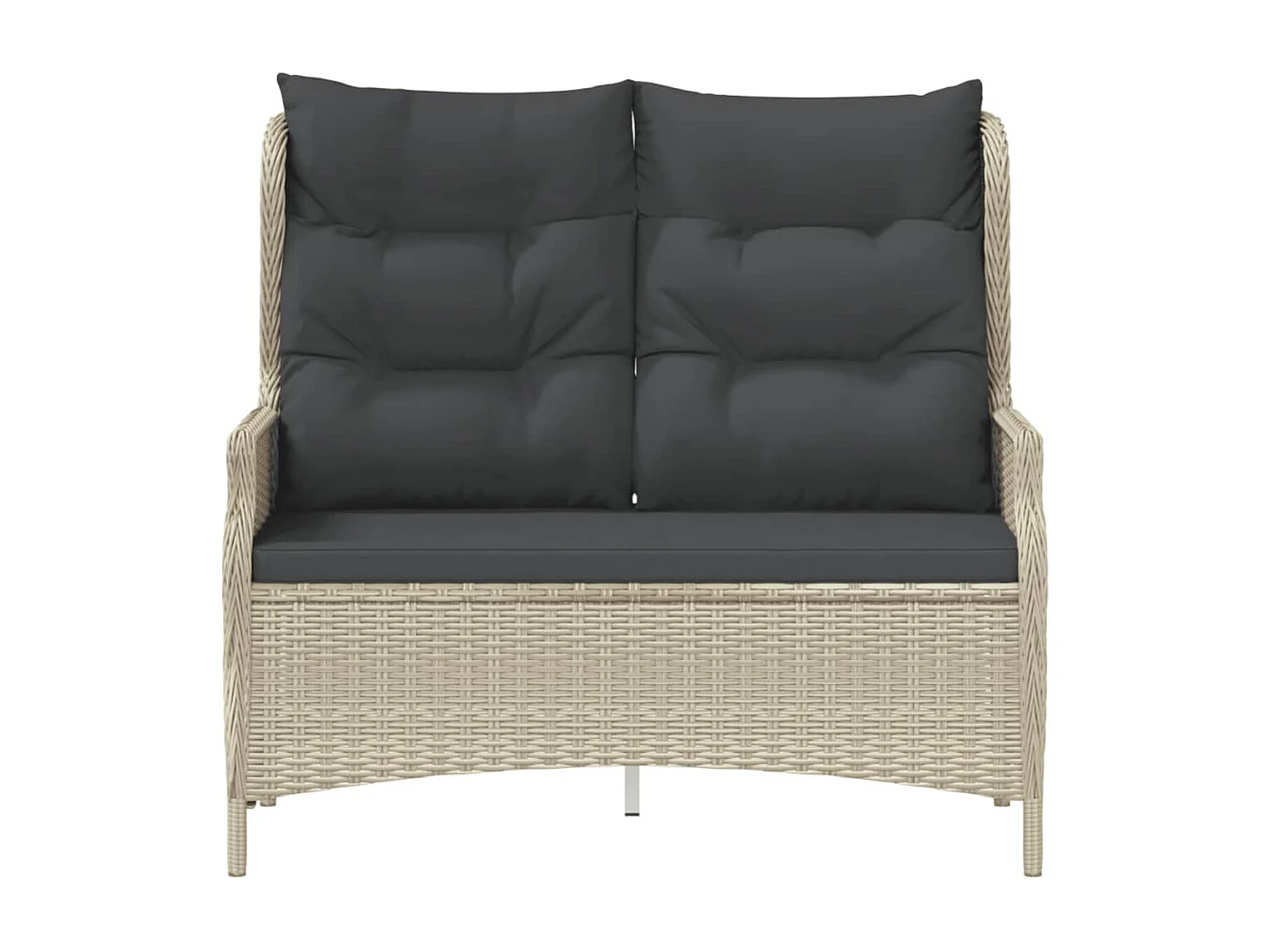 2-Sitzer-Gartenbank und hellgraue geflochtene Harzkissen