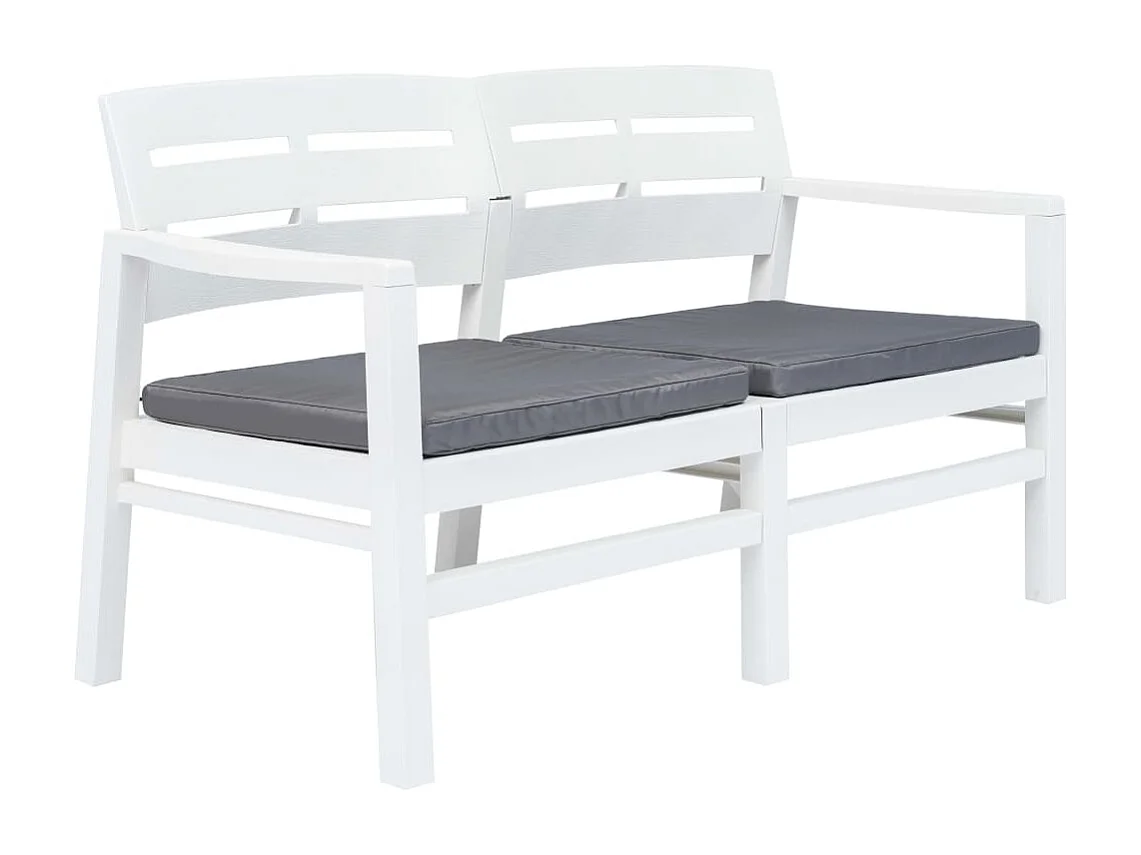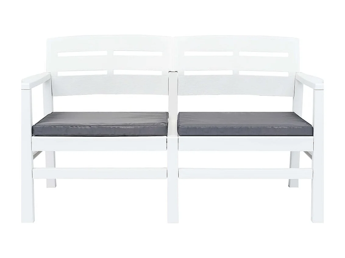 2-Sitzer-Gartenbank und Kissen 133 cm aus weißem Kunststoff