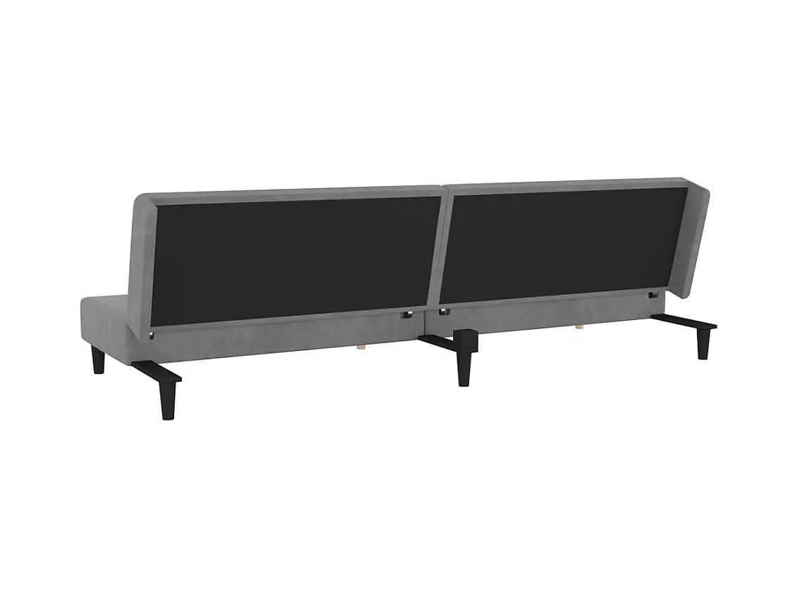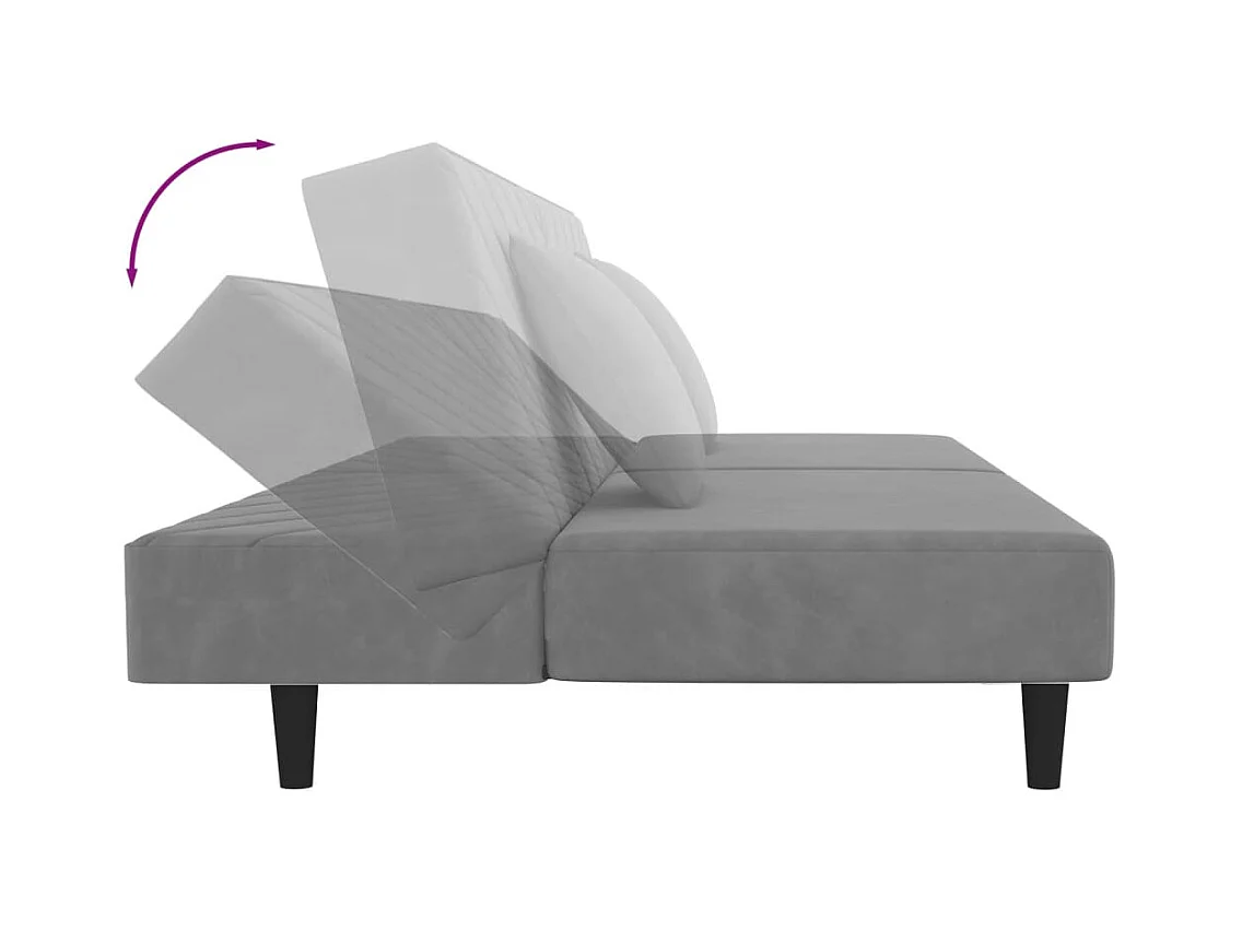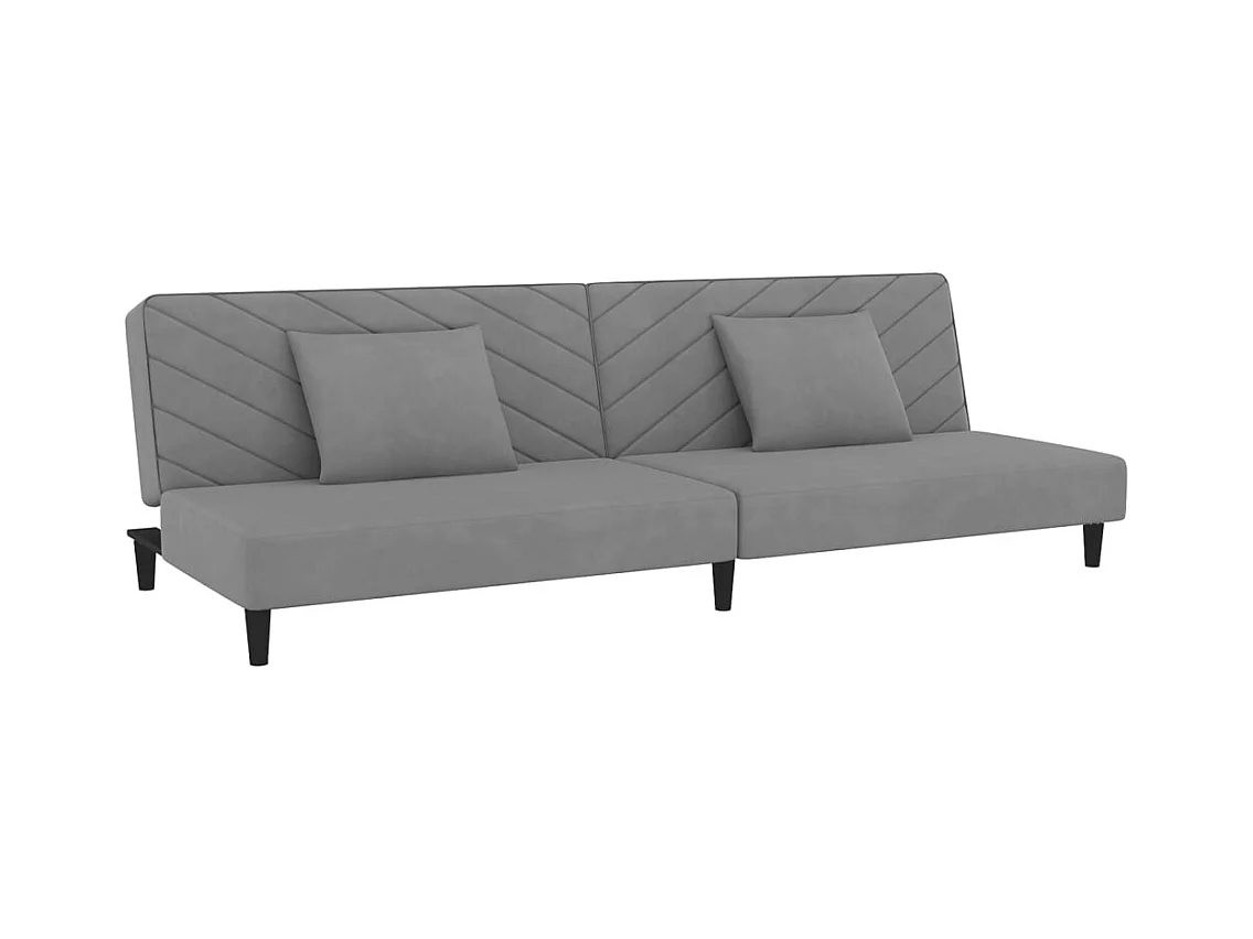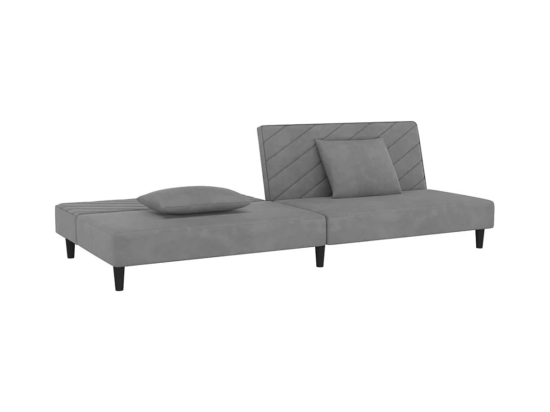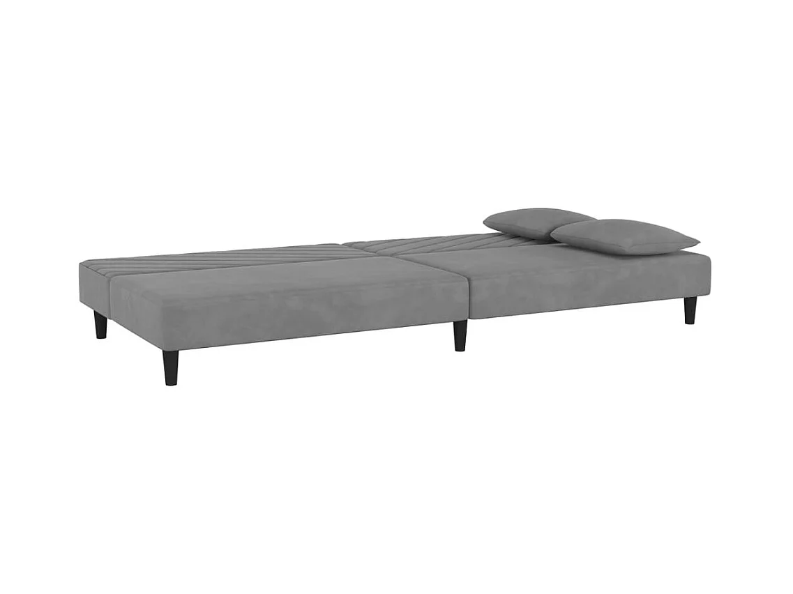 2-Sitzer-Schlafsofa mit zwei Kissen, hellgrauer Samt