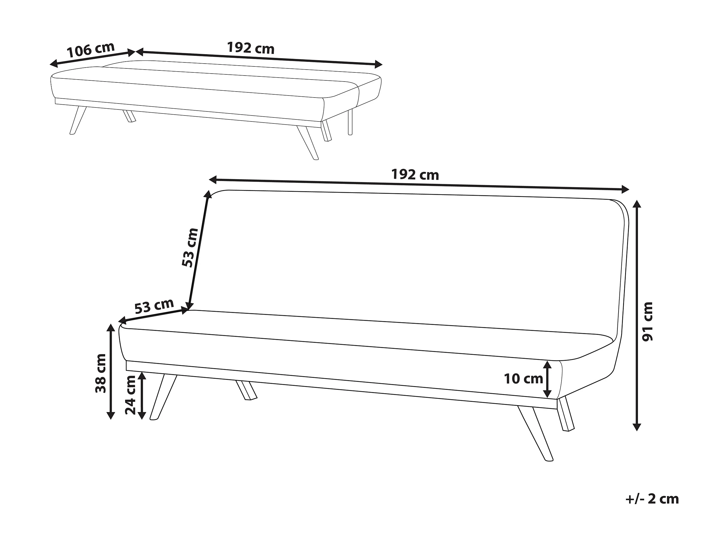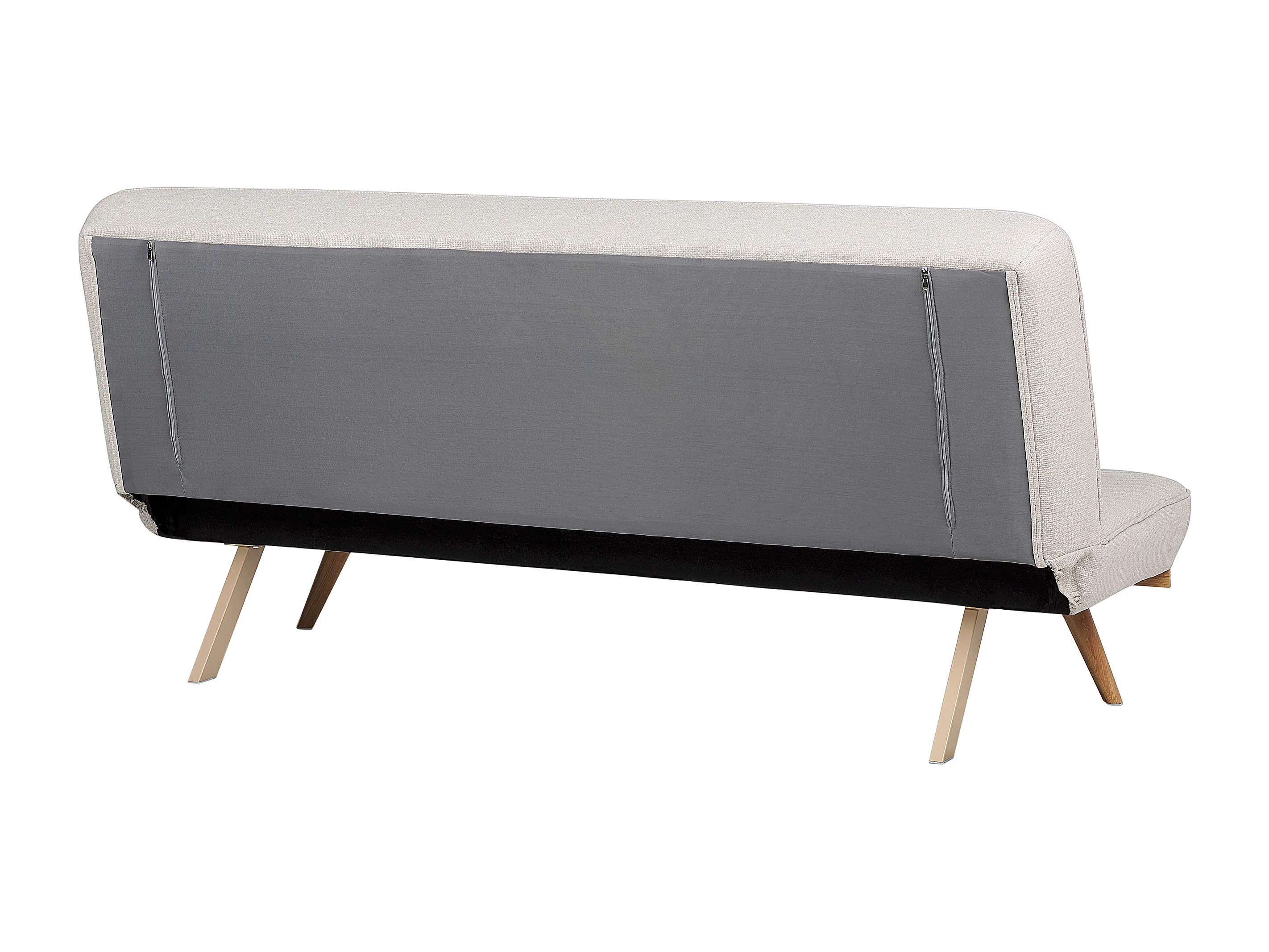 2-Sitzer Schlafsofa Stoffbezug beige gesteppt hohe Metallbeine Skandi Kalfafell