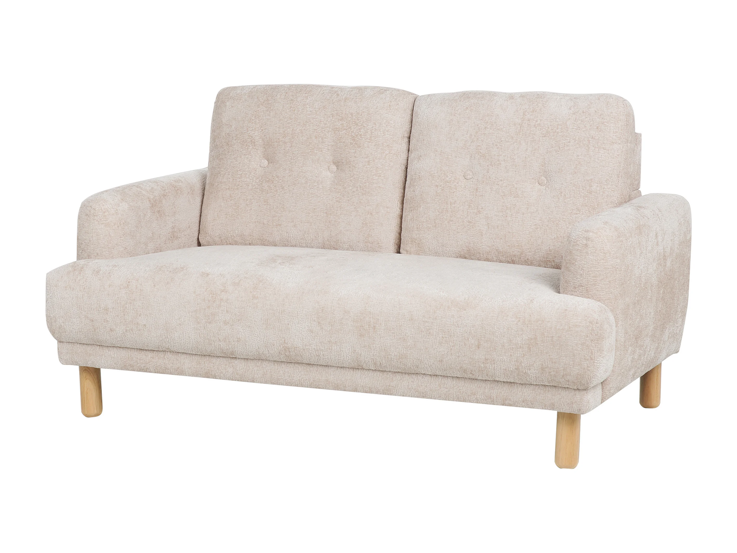 2-Sitzer Sofa Bouclé beige mit hohen Holzbeinen Armlehnen Knöpfe Retro Stil Tuve