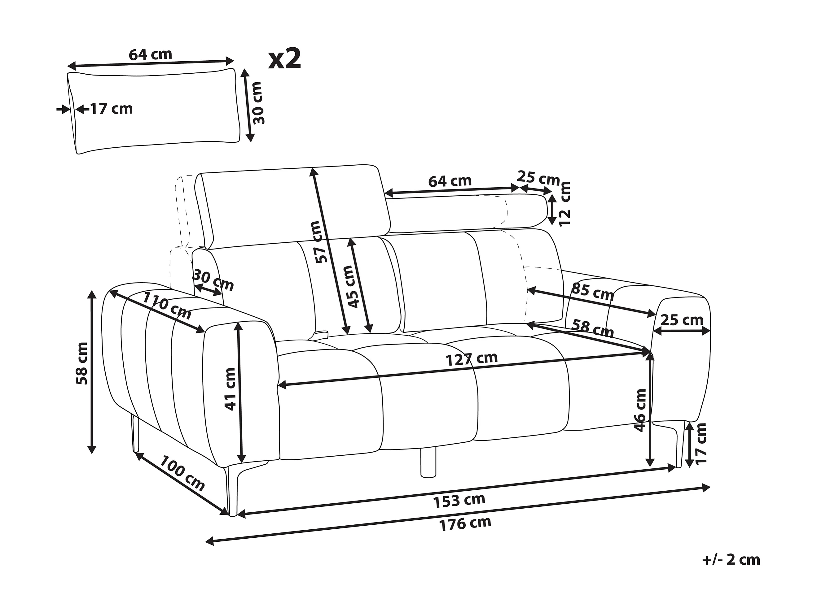 2-Sitzer Sofa Bouclé weiß Rückenlehne & Kopfteil verstellbar mit Kissen Vegamo