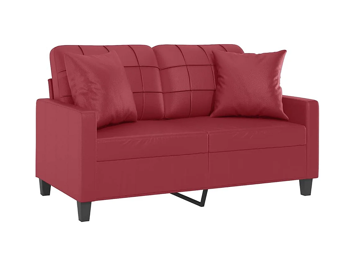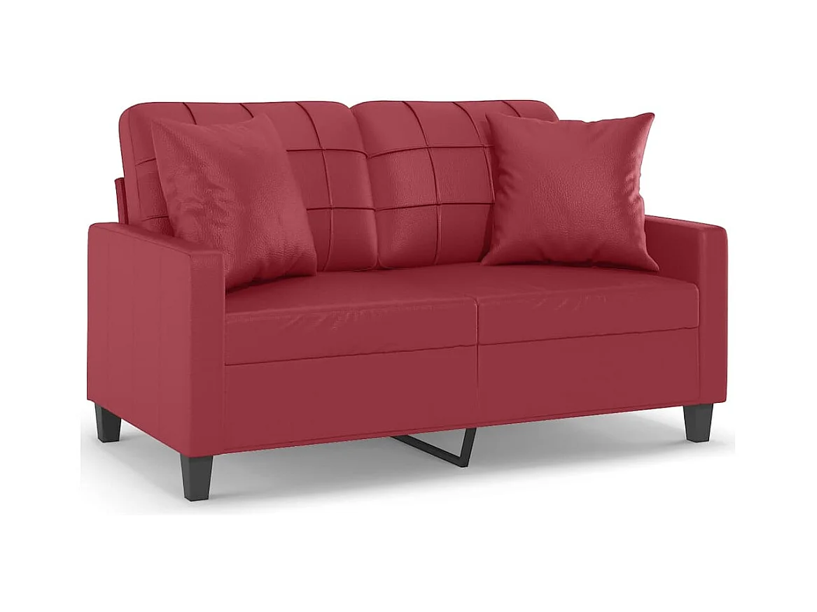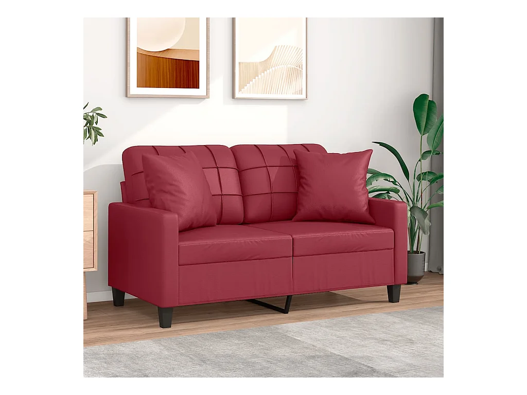 2-Sitzer-Sofa mit burgunderfarbenen Kissen 120 cm Kunstleder