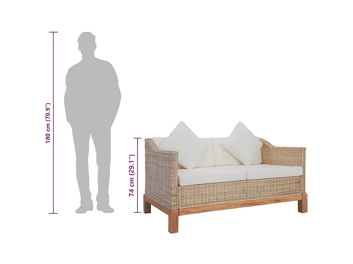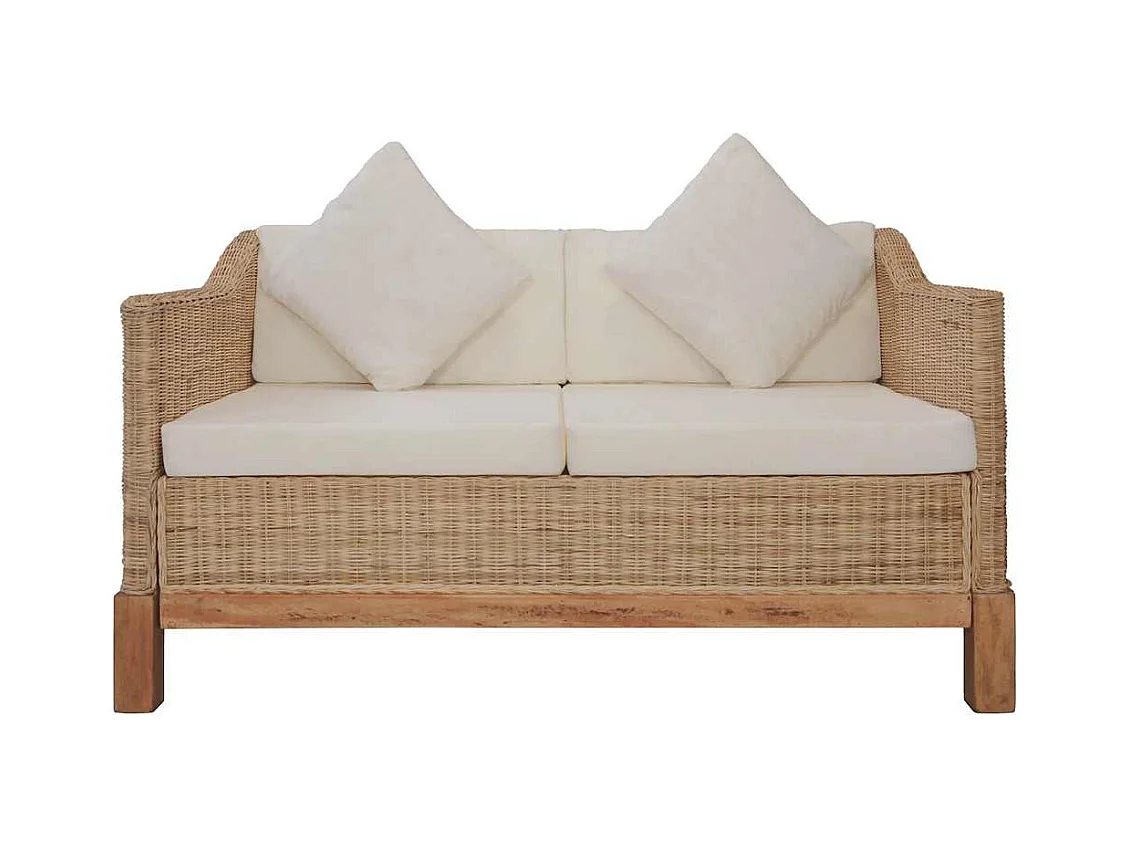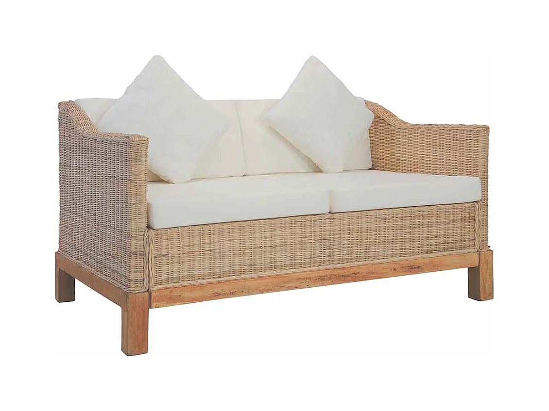 2-Sitzer-Sofa mit Kissen aus natürlichem Rattan
