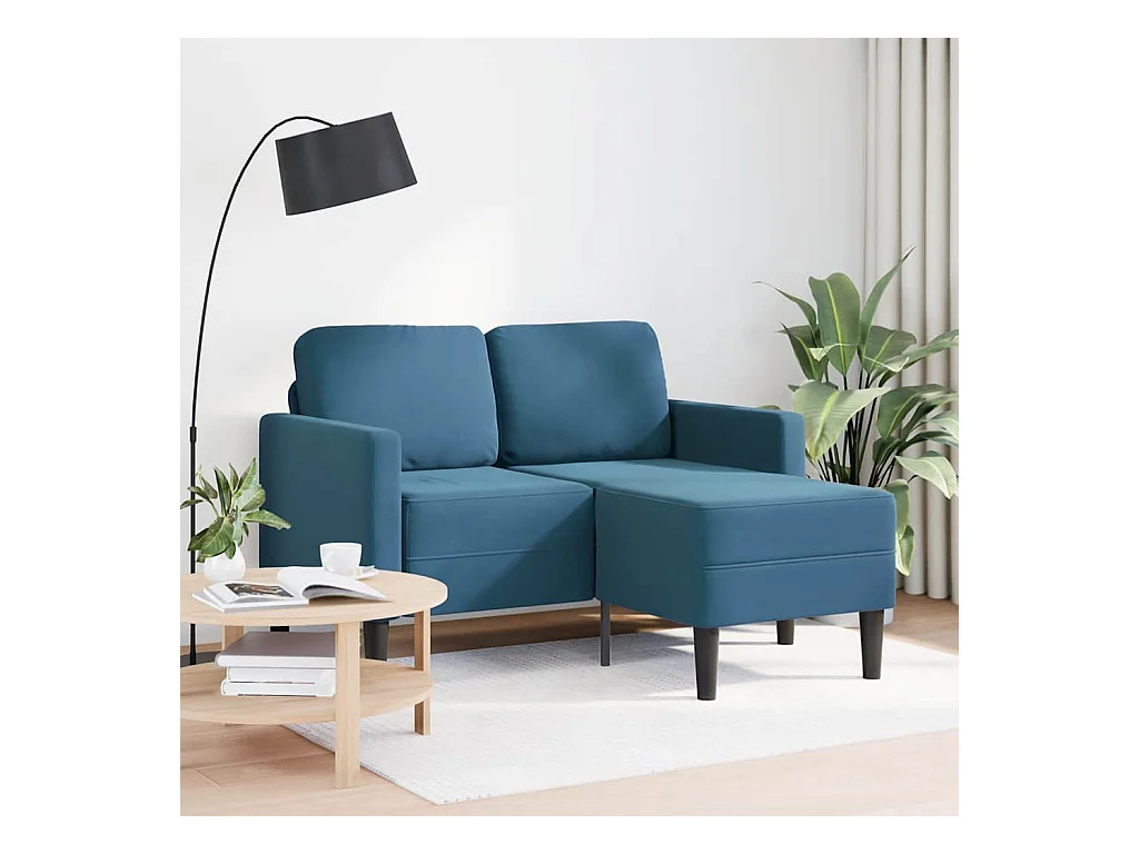 2-Sitzer-Sofa mit L-förmiger Chaiselongue aus blauem Samt, 125 cm