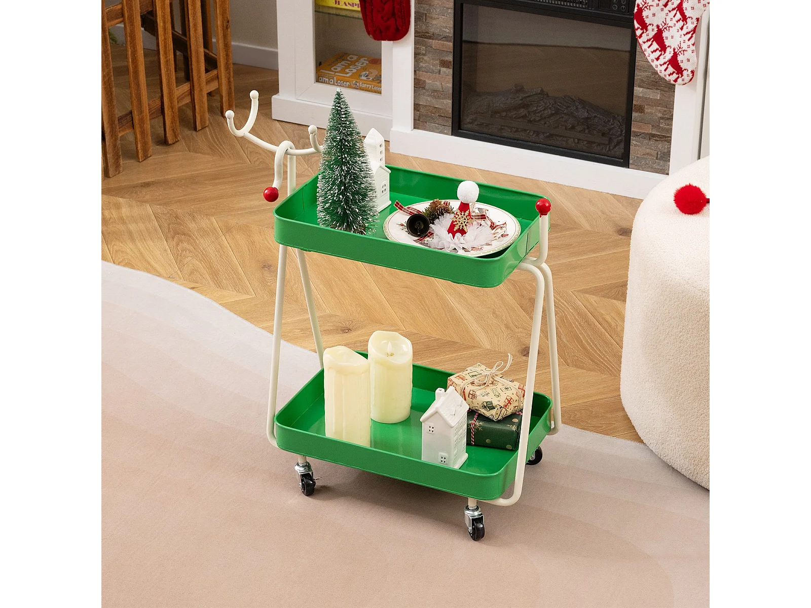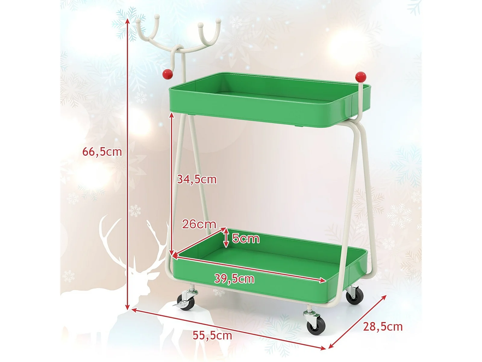 2-stöckiger Rollwagen in Rentierform Servierwagen Küchewagen für Weihnachten Grün