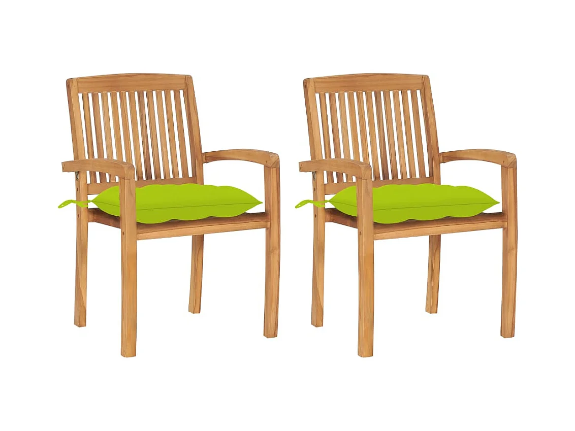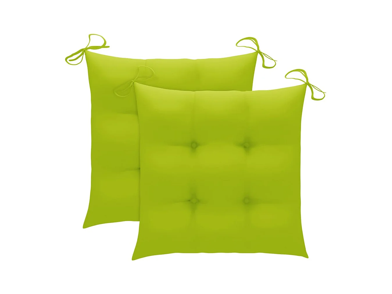 Gartenstühle 2er-Set und grüne Kissen. Massives Teakholz