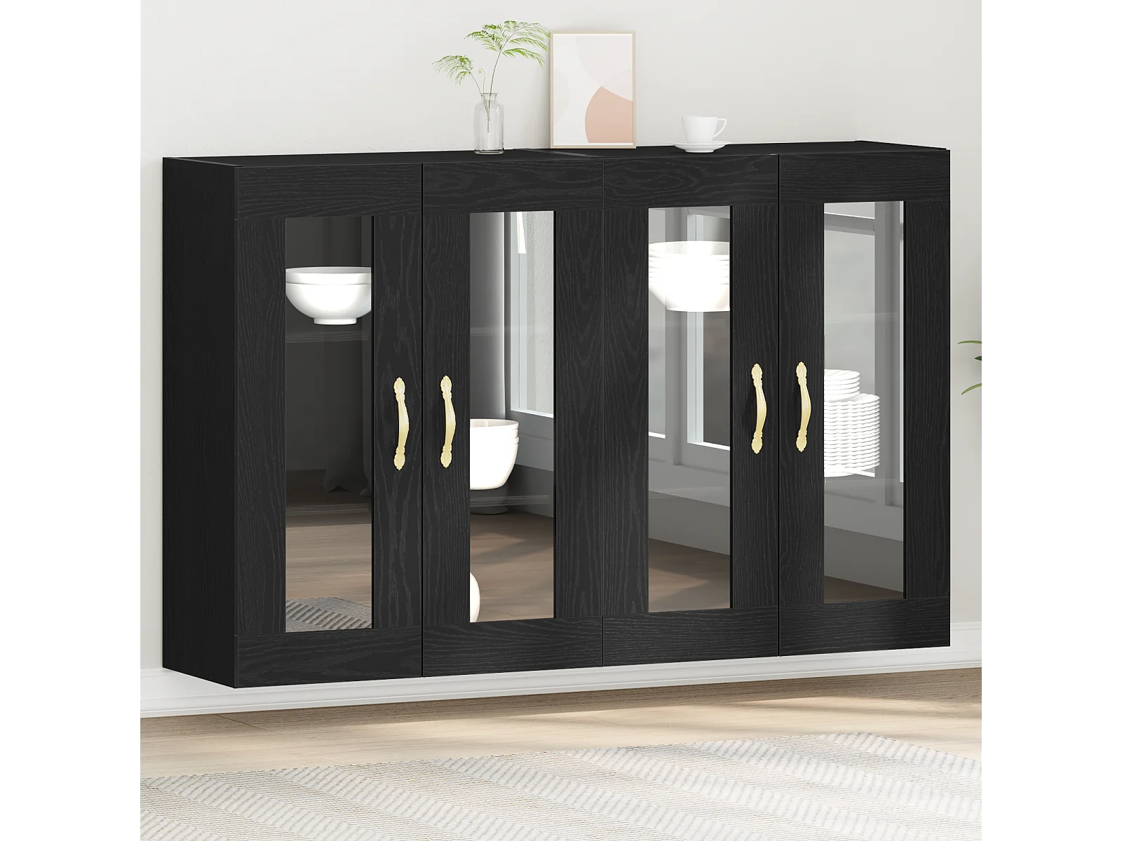 2-teilige Hängeschränke in Eiche schwarz, 69,5 x 34 x 90 cm in Holznachbildung.
