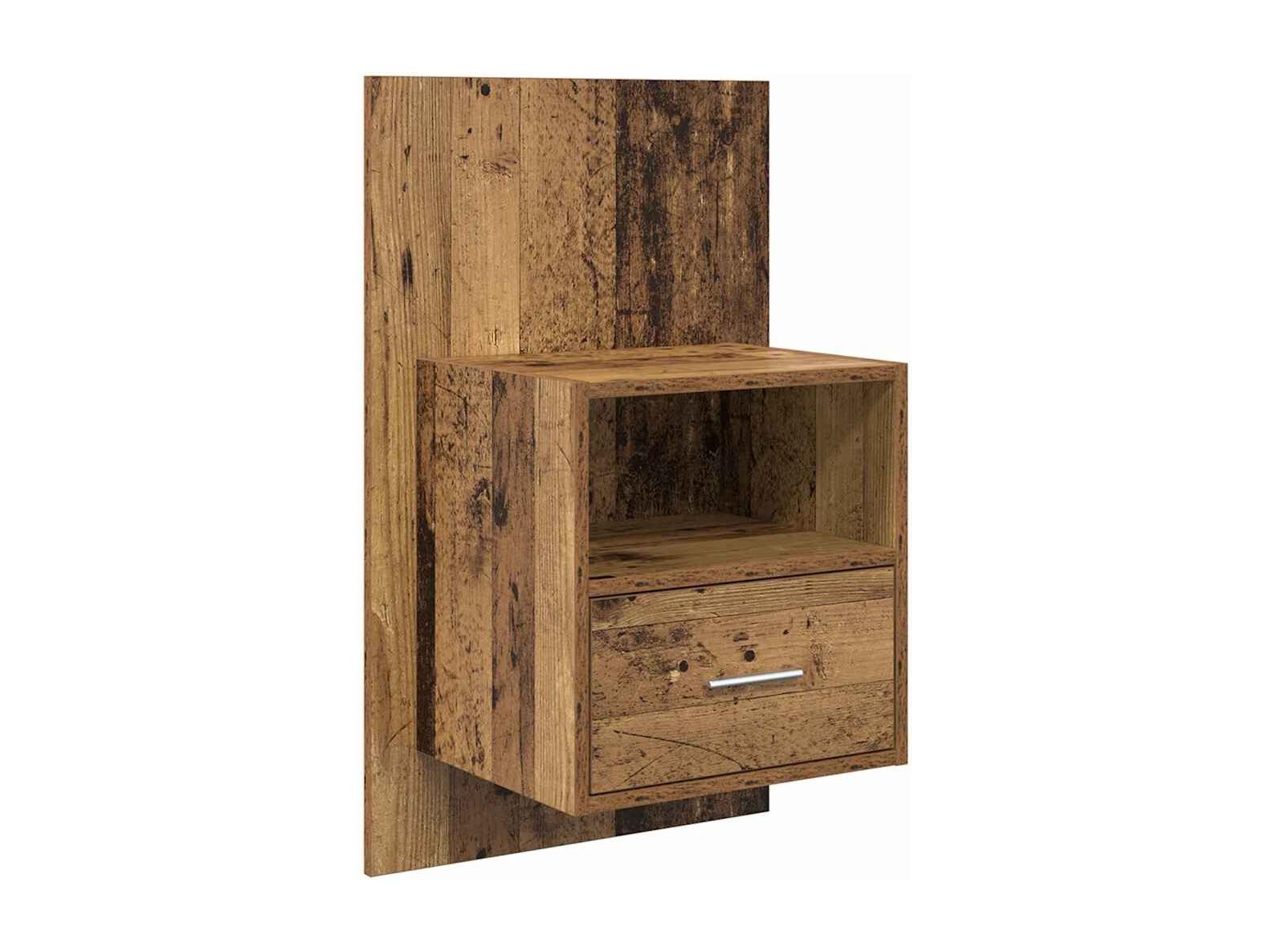 Wandmontierter Nachttisch aus brauner Eiche
