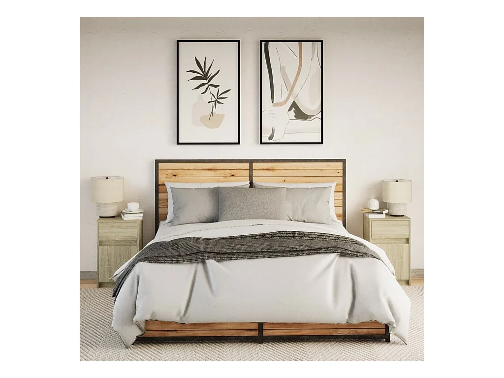 2-teiliger Nachttisch und LED-Leuchten, Sonoma-Eiche
