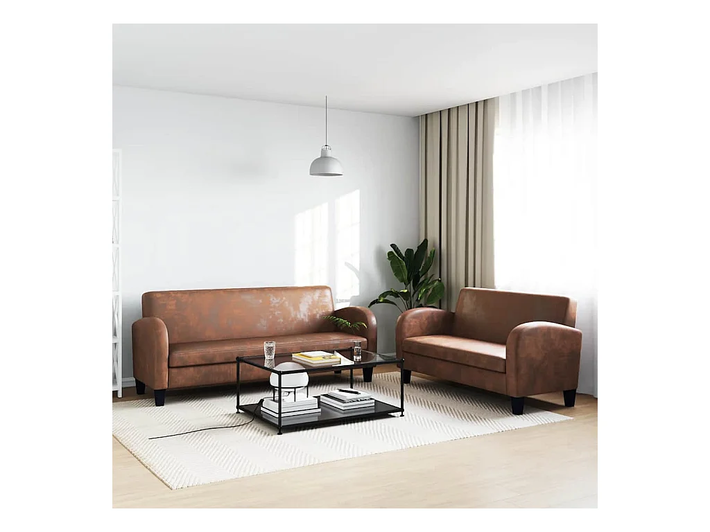 2-teiliges Sofa-Set in Wildleder-Optik Braun