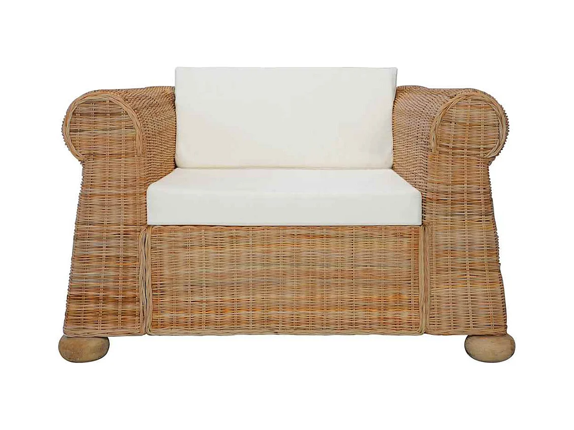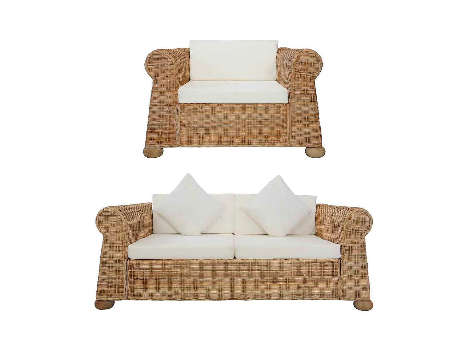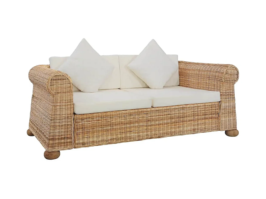 2-teiliges Sofaset aus natürlichem Rattan mit Kissen