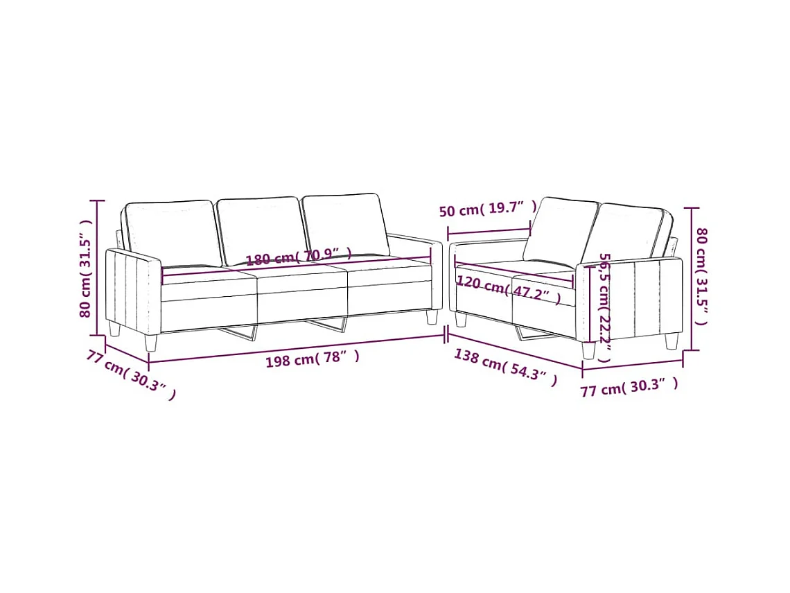 2-teiliges Sofaset mit Kissen Blue Velvet