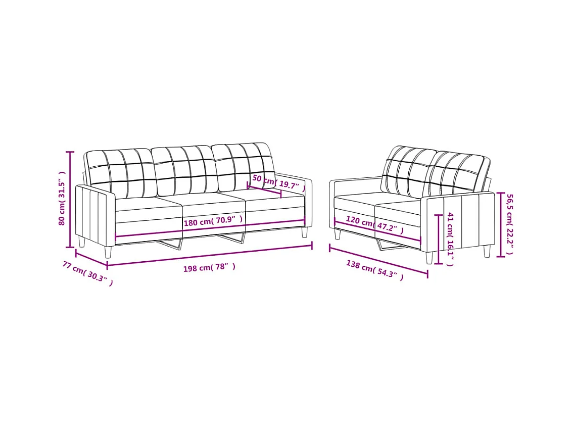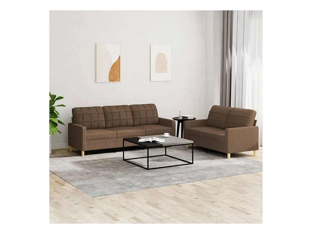 2-teiliges Sofaset mit Kissen, brauner Stoff